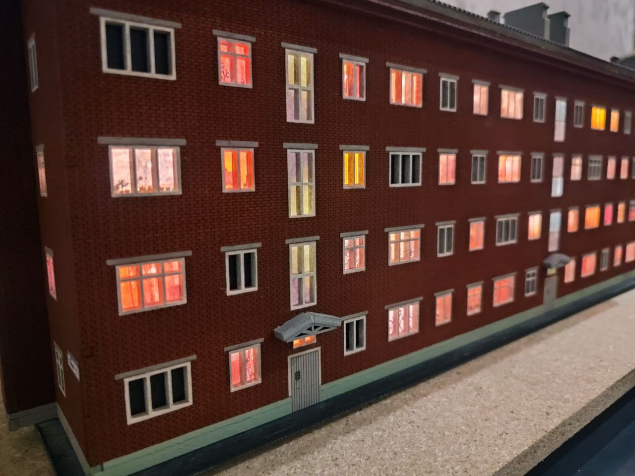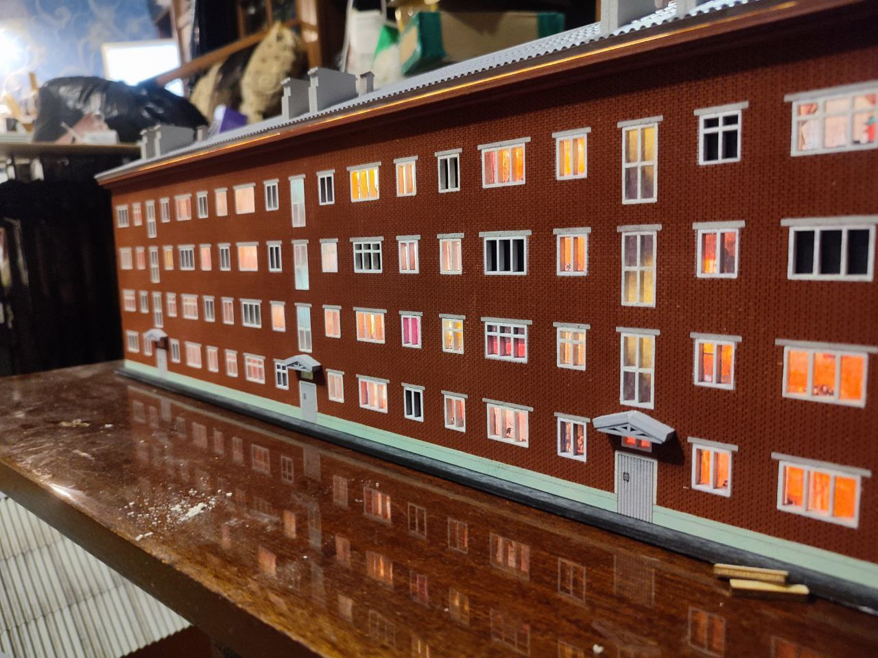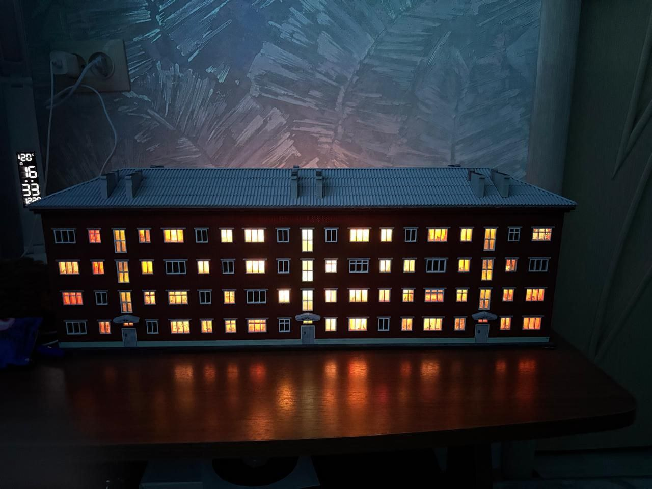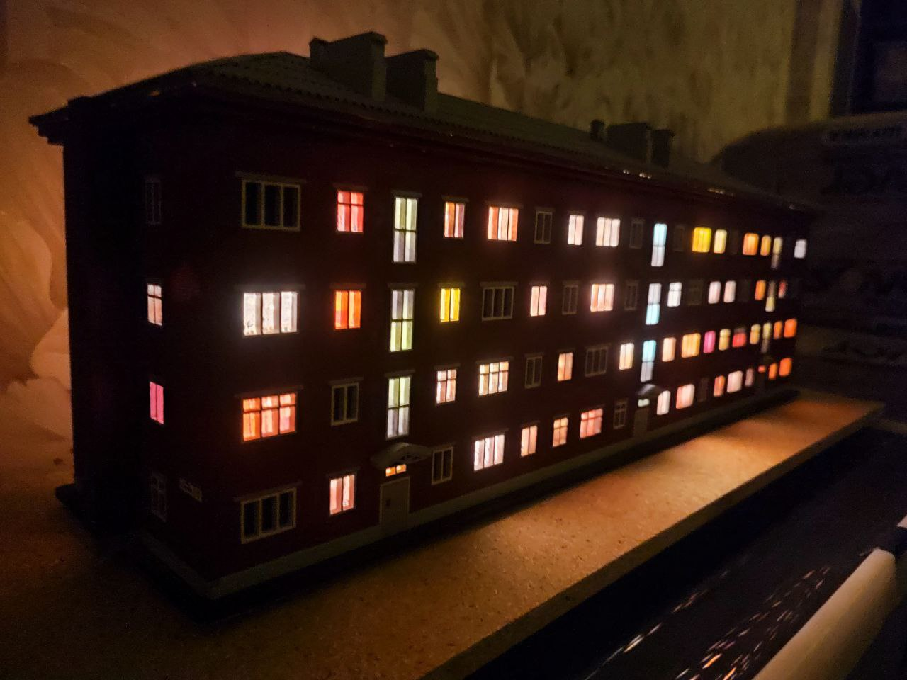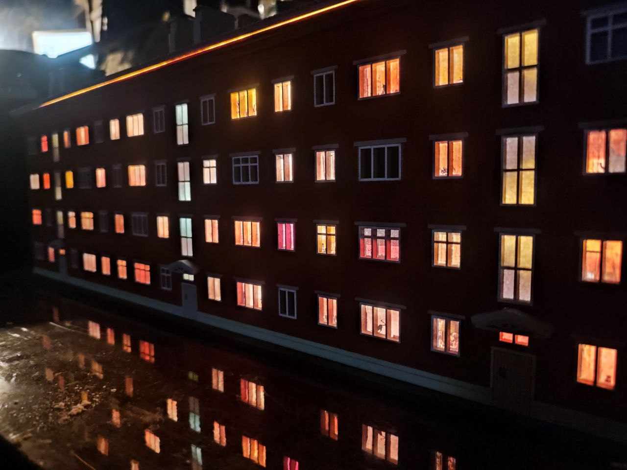 Одариваемый был в шоке, от своего бывшего дома, в мини варианте) Потом поиск своих окон, и разглядывание других. Котики в этом заказе были в окнах по максимуму!