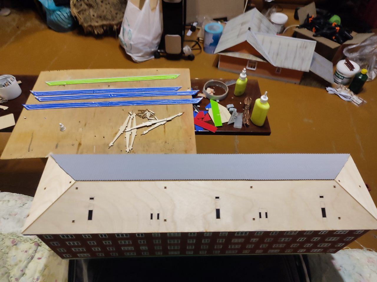 Склейка крыши довольно простая, клей, резинки, потом заделка щелей шпатлевкой.