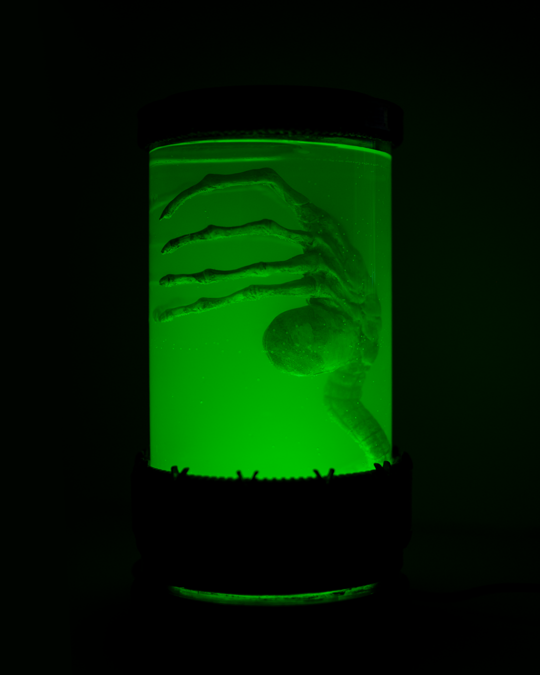 Увидел где в интернетах и решил повторить. Колбу сделал из банки для хранения сыпучих продуктов, подсветка из фонарика для ванной (он на батарейках, но я его переделал на блок питания), все остальное 3д печать