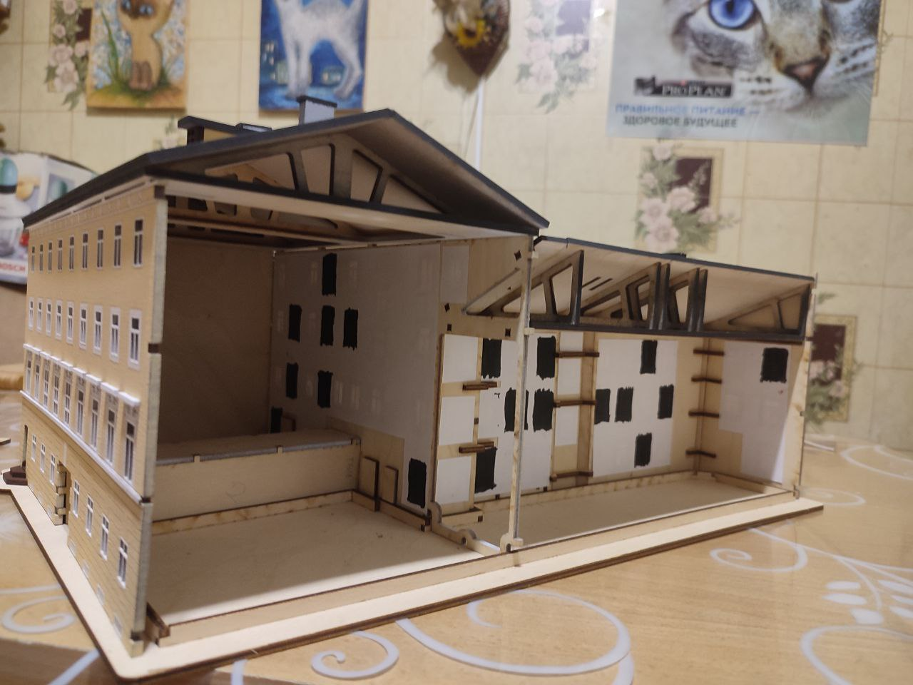 Небольшой нюанс. Стену нужно сначала покрасить, а потом склеить, а вот крыши нужно красить готовыми. Поэтому перехожу к склейке крыш.