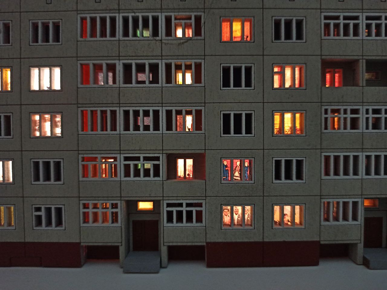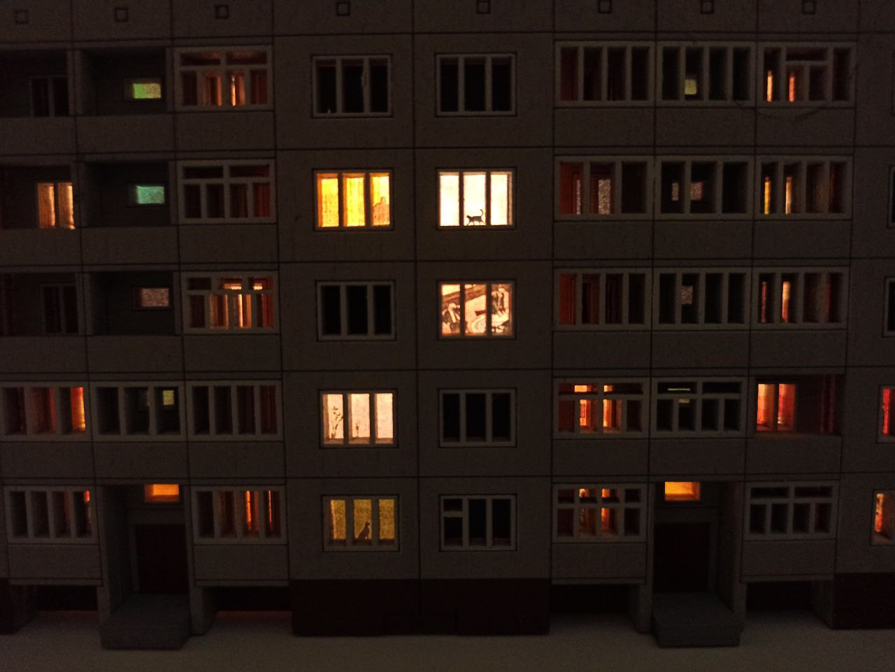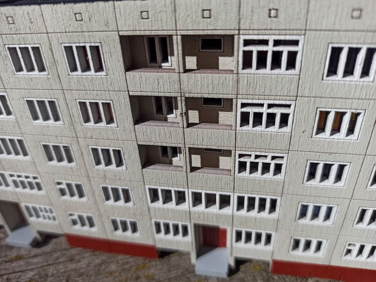 Дом сделан в масштабе 1к200. Фанера 3 мм толщиной, покрашен акрил красками вручную.