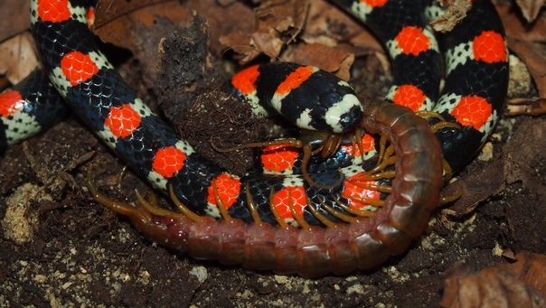 Ужас в квадрате для некоторых - змея, кушающая многоножку.