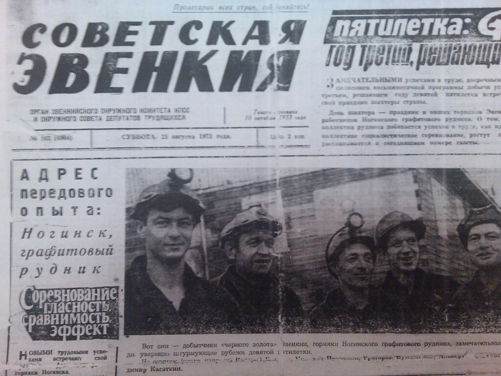 На руднике работали в основном приезжие, помню, что были и спецпереселенцы, в большинстве своем - из Латвии. Рудник крепко стоял на ногах, каждый год караваном в поселок приходили продукты из Красноярска, а обратно везли наш графит. Развал СССР привел и к развалу производства, рудник стал никому не нужен. Стали снижаться объемы производства, а потом и вовсе рудник попал в частные руки. Это были тяжелые времена для шахтеров, начались перебои с зарплатой. Помню, что в 1996 году даже забастовка была, шахтеры спустились в шахту и долгое время не поднимались, выдвинув свои требования. Люди оказались в безвыходном положении – ни работы, ни денег. Начались перебои с подачей электроэнергии, снабжение уже стало не то. Конечно, люди не сидели сложа руки: сажали картошку, держали живность, рыбачили, охотились, грибы, ягоды собирали, ведь места-то у нас богатые!