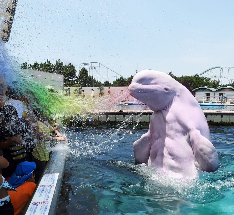 Очень многие белухи относятся к людям тепло. Особенно к тем, кто проводит с ними много времени. Но не конкретно эта. Её люди бесят, похоже.