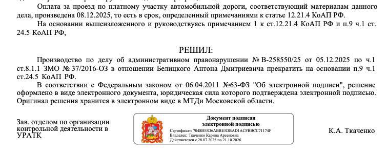 Финальную точку поставило вчерашнее пиьсьмо, где зав. отделом по организации контрольной деятельности в УРАТК МТДи Московской области Ткаченко Карина Арсеновна, рассмотрев материалы дела в отношении меня, и определив, что я "владею русским языком", решила производство по делу об административном правонарушении прекратить.