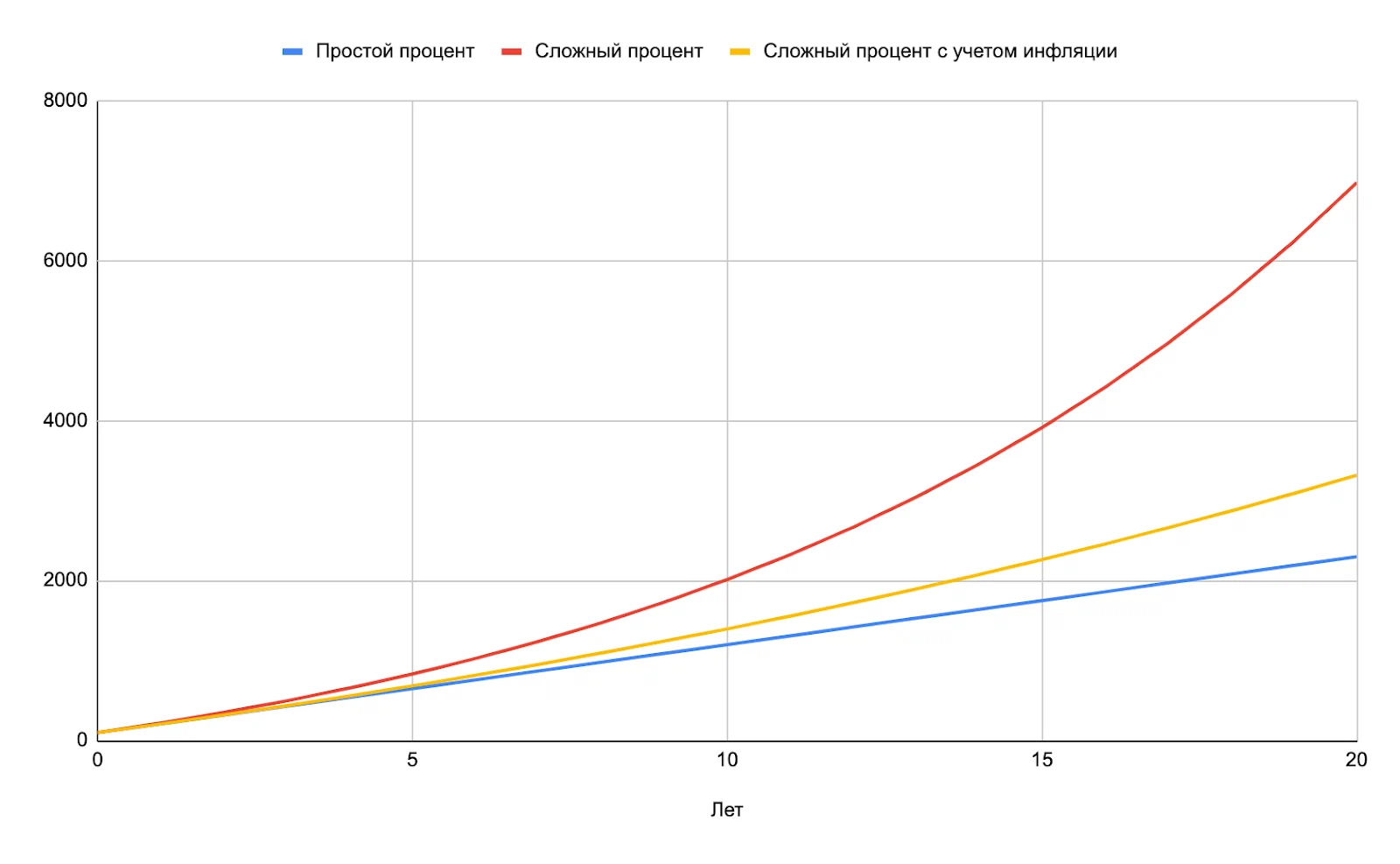 Когда кто-то рассказывает про доходность 10% (средняя доходность портфеля «60/40» за 10 лет) и сложный процент, не забывайте вычесть оттуда 6% инфляции (средняя за 10 лет в РФ) и не забывайте про ее сложный процент. 4%, ну пусть даже 6% — это совсем не то же самое, что 10–12%.
