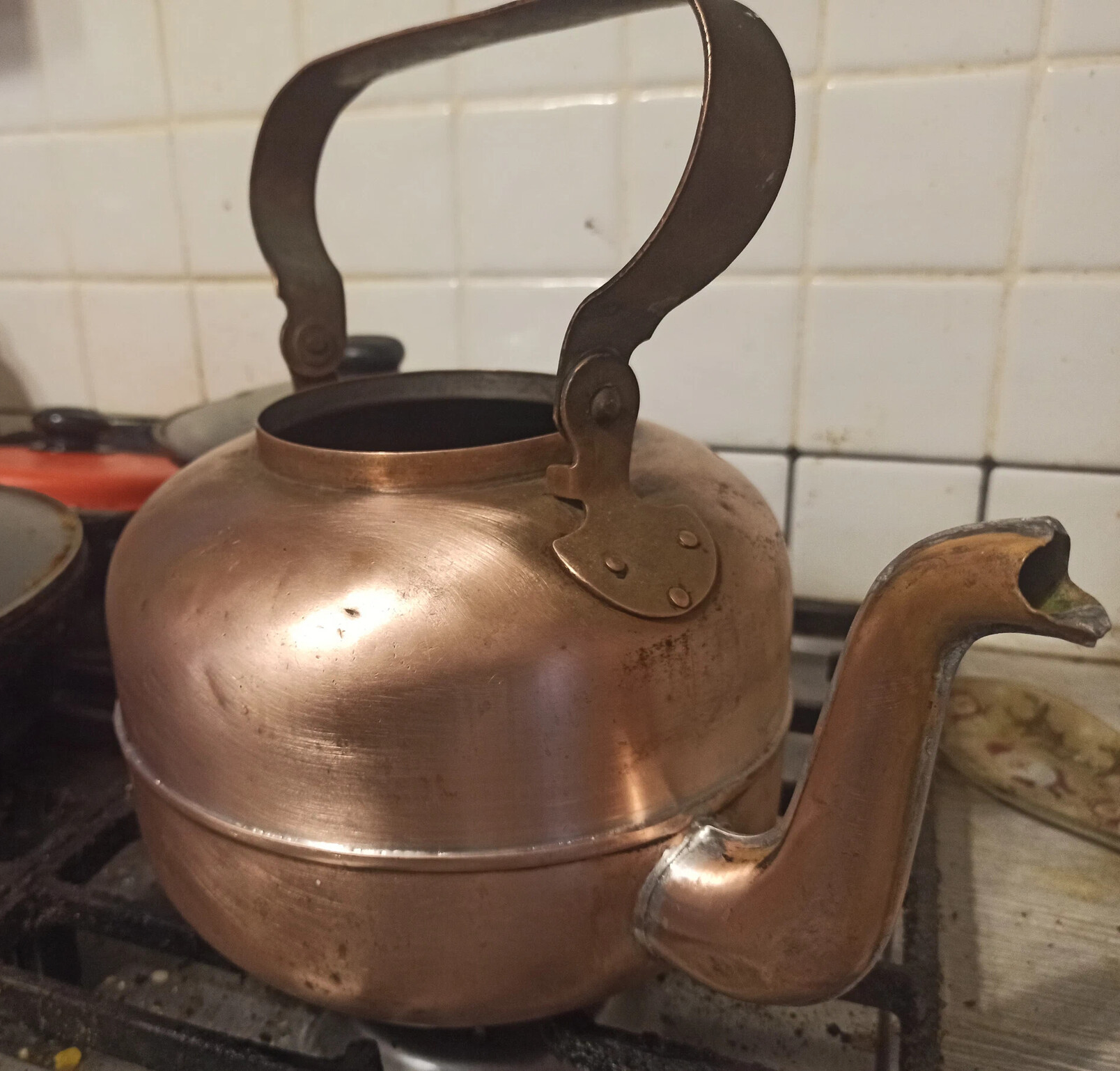 Вот и очередной "носик". Медный чайник типа финского походника. Носик не сварной, спаян на олово по выступающему шву. Весь шов распаян, естественно.