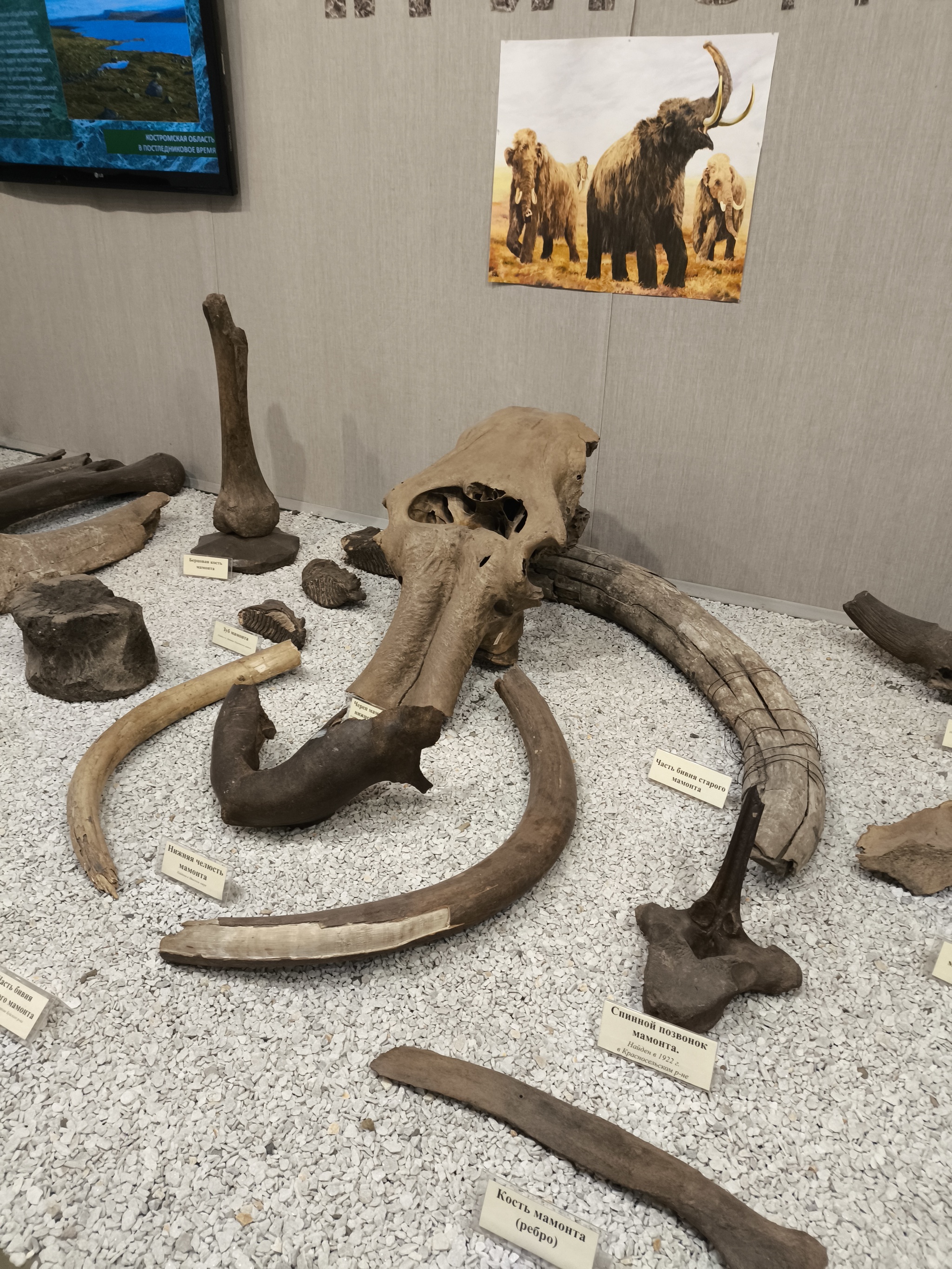 Отдел природы Костромского музея-заповедника участвовал в музейном проекте "Собери мамонта", показав внушительных размеров зубы, бивни и всякие мамонтовые кости в экспозиции: