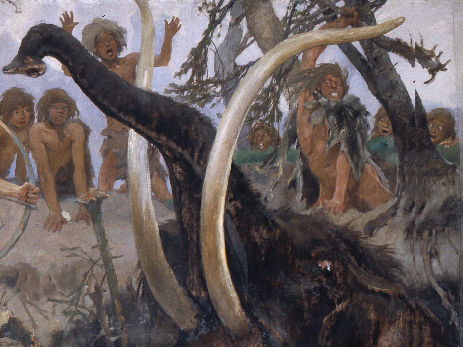 Самого эффектного мамонта можно увидеть в Москве прямо на Красной площади, в зале Государственного исторического музея. Фриз "Каменный век" рисовал сам Виктор Васнецов! Основатель музея граф Уваров предлагал изобразить охоту на пещерного медведя, но Васнецов решил иначе - будет мамонт («Это, по-моему, должно было звучать более сильно и больше соответствовать тому времени, когда жили каменные люди. А то медведь! Это мелковато. Мамонт же — другое дело»).