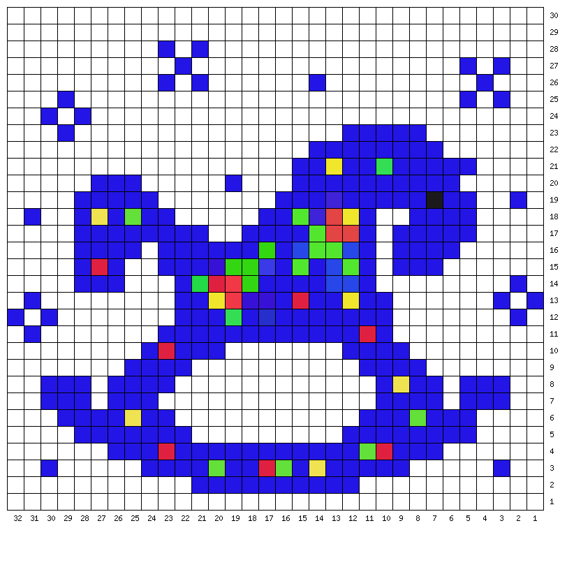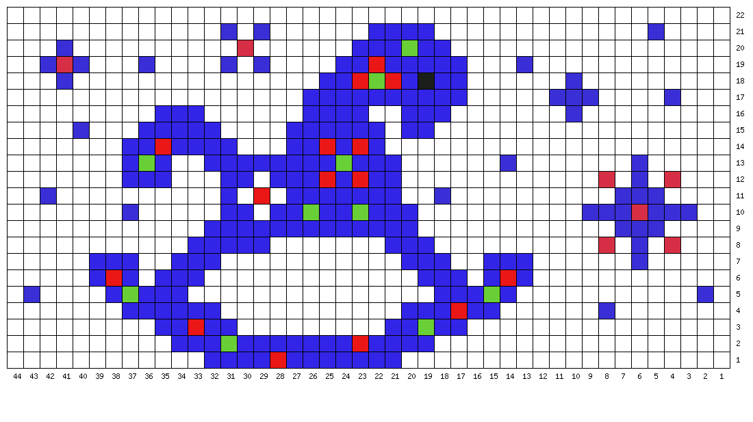 Можно этот рисунок воплотить и в жаккарде (на шарфике, на детском свитере). Вот мои схемы, побольше и поменьше: