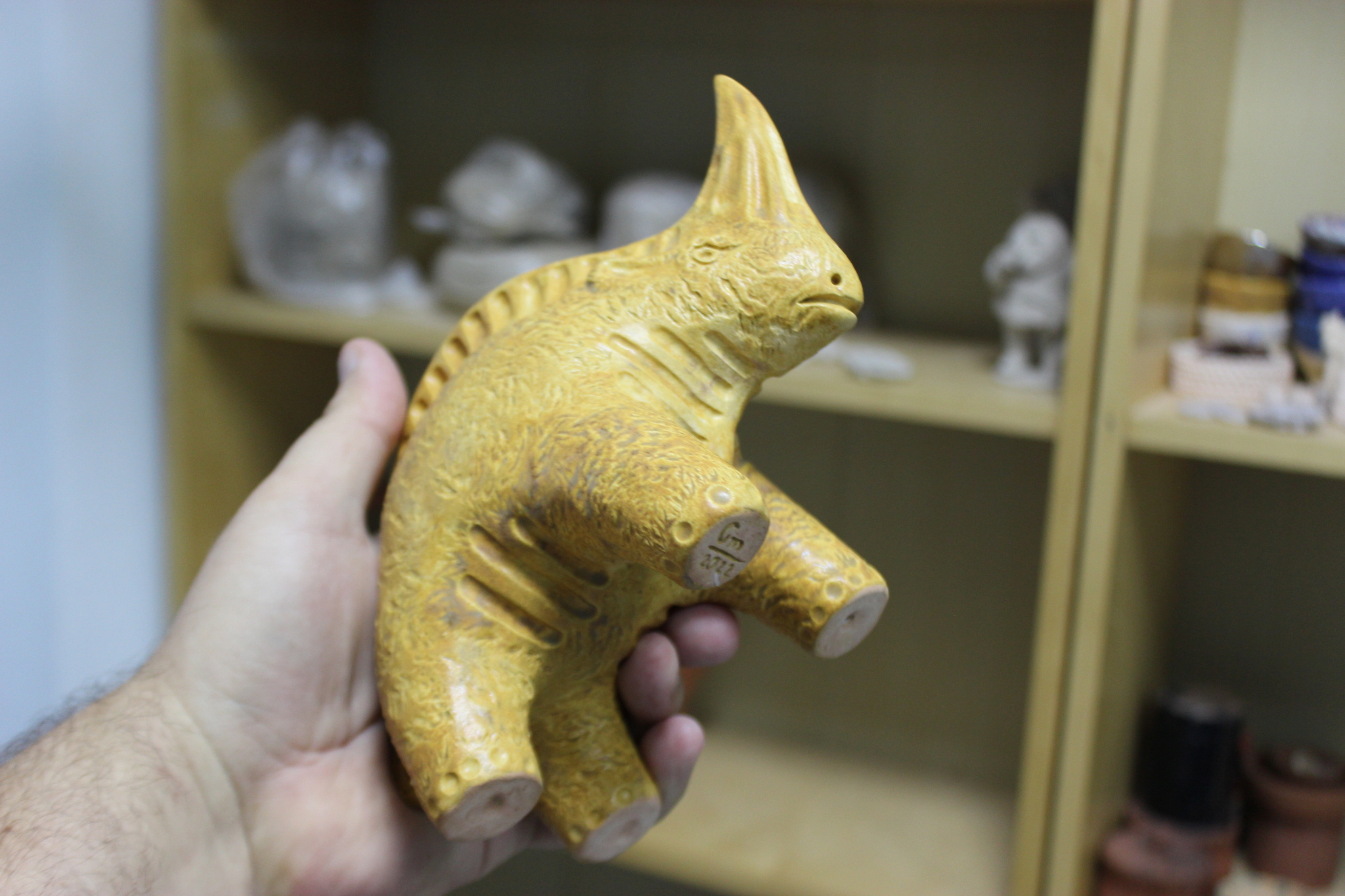 Лепил, как всегда, вручную из комка, без каркаса. Делал выборку петлёй, чтобы фигурка была пустотелой. Первый обжиг был на 1050 градусов.
