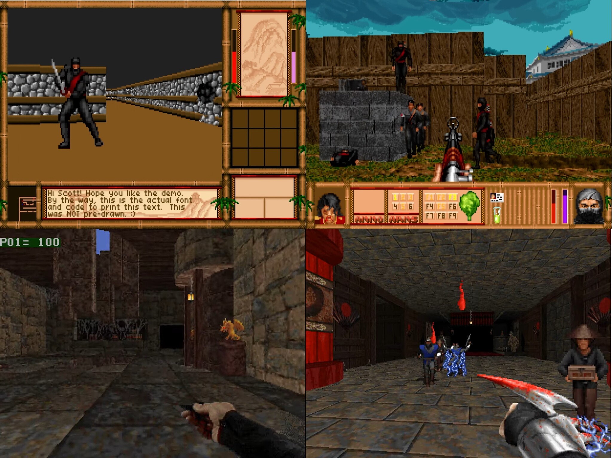 Разработка Shadow Warrior началась в 1993 году, когда проект ещё носил название Ninja.exe и представлял собой эксперимент Джима Норвуда в жанре приключенческого экшена с элементами восточной мифологии. Вдохновлённая фильмами о ниндзя, игра задумывалась как серьёзная и даже атмосферная история: без огнестрельного оружия, с акцентом на ближний бой, магические заклинания и традиционных противников. Однако вскоре вектор разработки радикально изменился. Спустя восемь месяцев после старта команда получила в распоряжение Build Engine, разработанный семнадцатилетним вундеркиндом Кеном Сильверманом – на тот момент один из самых мощных движков в индустрии. Он позволял делать то, что было недостижимо на Doom Engine: многоуровневая архитектура, интерактивные объекты, сложные скрипты и псевдотрёхмерная графика. Чтобы по-настоящему оценить масштаб новаторства Build Engine и амбициозность студии Apogee/3D Realms, рекомендую заглянуть в мою статью о Duke Nukem 3D. Там вы найдёте массу интересных деталей – о самом Кене, о внутренней кухне 3D Realms, об их дерзких решениях и о том, почему в девяностые они казались настоящими рок-звёздами геймдева!