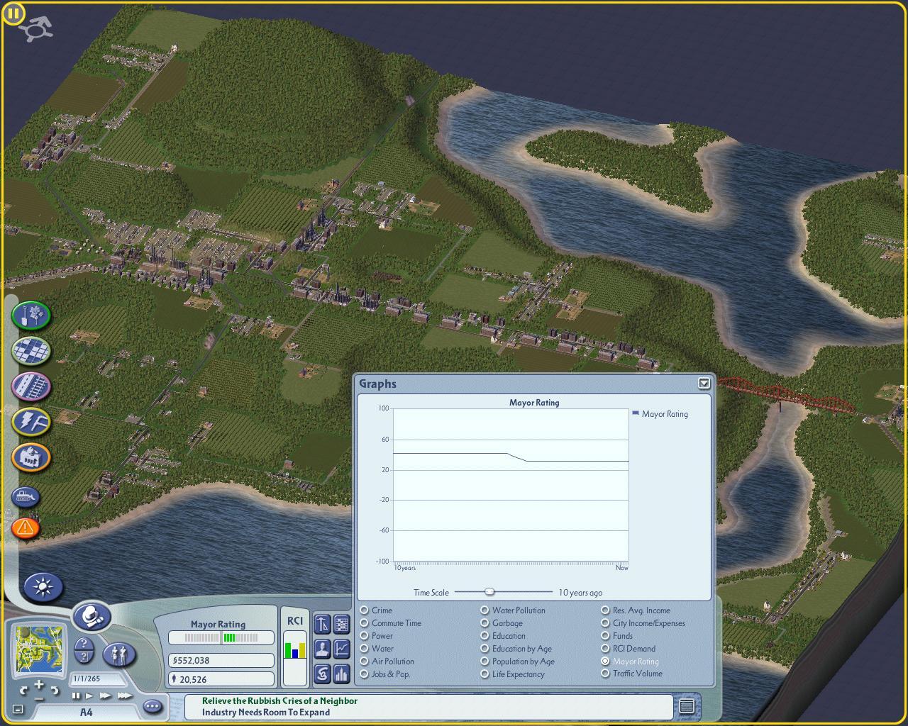 Я пишу про бюджет, налоги и застройку, но не менее важную роль в SimCity 4 играет рейтинг одобрения мэра, который является наглядным индикатором того, как город реагирует на ваши решения. Он отражает последствия загрязнения, преступности, пробок, уровня образования и медицины, налоговой политики и даже отдельных событий, позволяя быстро понять, что ты делаешь не так. Во многом именно от рейтинга зависит, будут ли вам открываться так называемые «подарочные» постройки — награды, которые игра не выдаёт сразу. Их нужно заработать через определённые условия — достигнув нужных этапов развития, удовлетворив требования города или иногда выполнив конкретные задачи. После этого вам предлагают принять награду и разместить её в выбранном месте. Многие такие здания стоят денег в обслуживании, но взамен повышают привлекательность районов и часто поднимают рейтинг мэра вокруг себя, а некоторые «сделки» наоборот могут ударить по одобрению, так что приходится задуматься, стоит ли их брать?