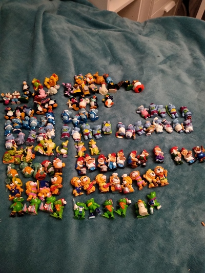 Нашлись герои мультфильмов, а так же, частично обнаружились вот такие киндеровские "собирайки", где детали от разных игрушек подходят друг к другу и можно собрать какую-нибудь дикую наркоманию.