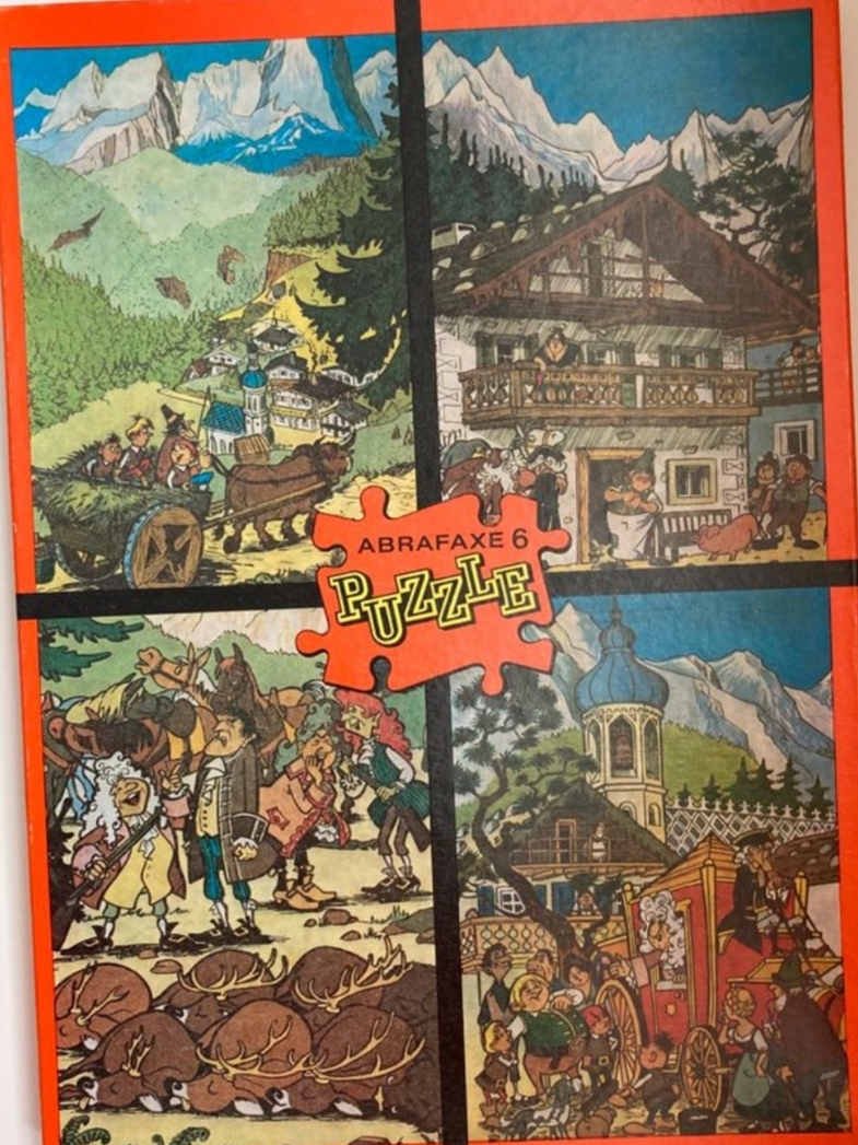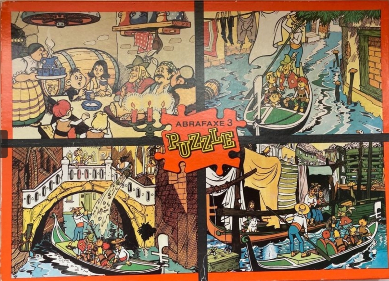 Оказывается. Немецкий художник Мехтель Хартмут рисовал комиксы про Абрафаксов - мальчиков Абракса, Брабакса и Калифакса, про их путешествия и приключения. Это было очень популярно. Есть даже фильм "Абрафаксы под черным флагом" . По комиксам вышли несколько наборов пазлов. Мне удалось найти фотки восьми, возможно были ещё. А у меня был номер три😍