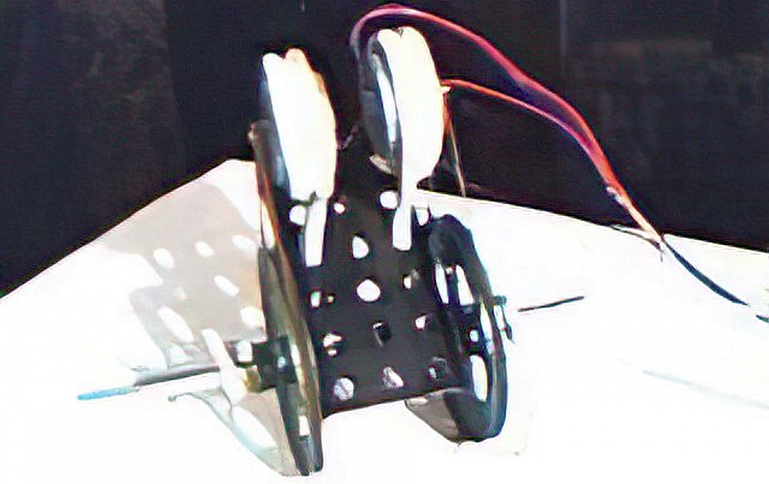 В задачу других колёс входило только обеспечение лёгкого поворота. Сначала я сделал одно свободно поворачивающееся колесо, но оно оказалось слишком сложным, и часто выходило из строя, поэтому я заменил его двумя микро подшипниками, которые я когда-то нашёл на земле. Достать такие где-то в магазине для меня не представлялось возможным, я просто не знал, где такие продаются.