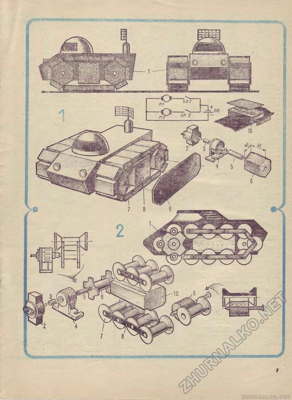 Я хотел сделать что-то проходимое и на гусеницах. Напомню, что гусеницы для самодельной машины в то время купить было негде, и из чего их сделать, я так и не нашёл. В журнале "Юный Техник для умелых рук" была статья о том, как сделать самодельные гусеницы с помощью спичечных коробков и катушек от ниток, но я счёл этот способ слишком трудоёмким, я подумал, что моторчики от плеера не "потянут" такую нагрузку.