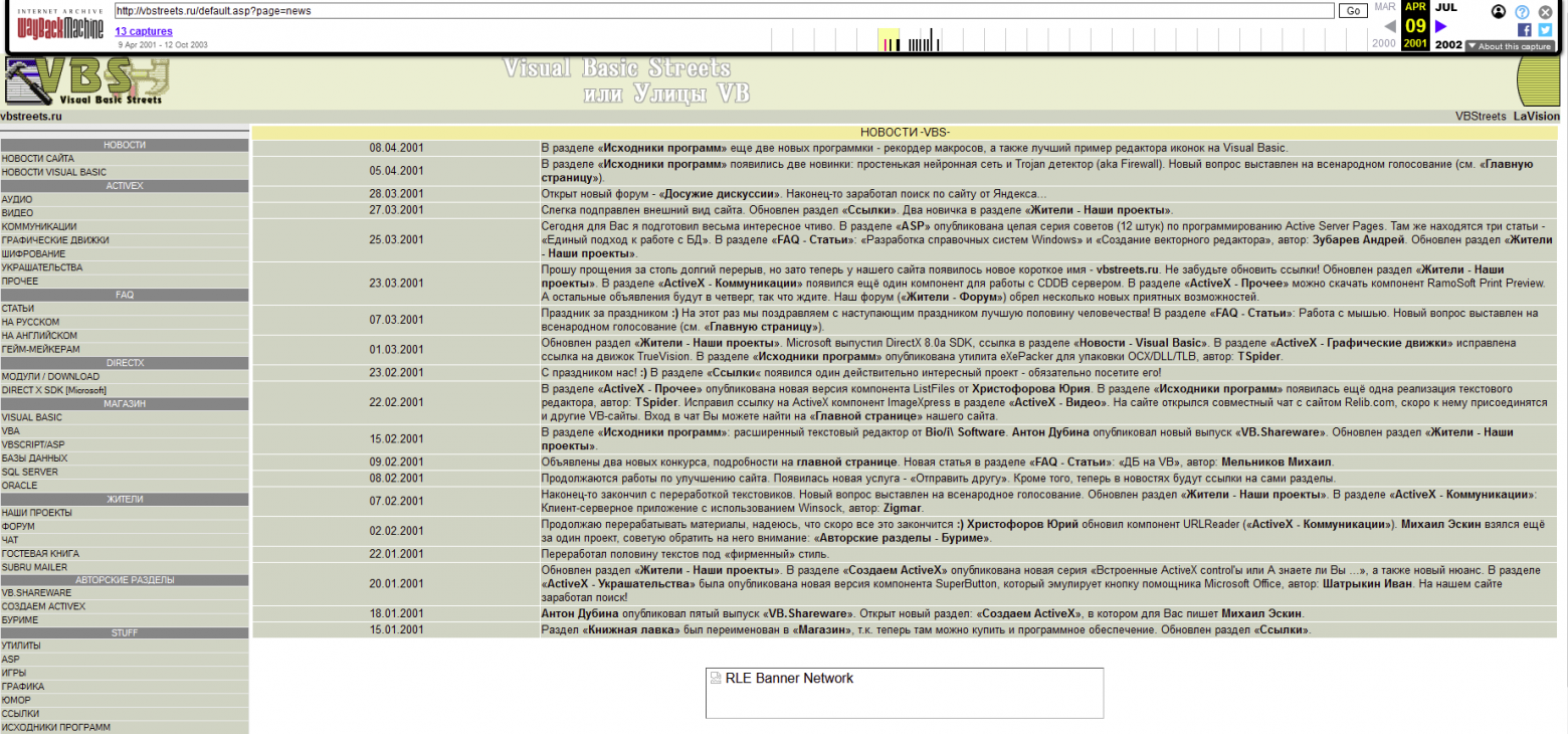 Я стал искать информацию о работе с различными портами. Скачав статьи по теме доступа к портам, скачанными с сайтов — а, так как подключение было по Dial-Up, то я их скачивал на жёсткий диск и с него открывал — и всякими справочниками по Visual-Basic в различных форматах, среди которых встречались и TXT, и HTM, и CHM. Одним из самых известных сайтов был VBstreets.ru, где было публиковалось больше всего полезной для меня, на тот момент, информации.