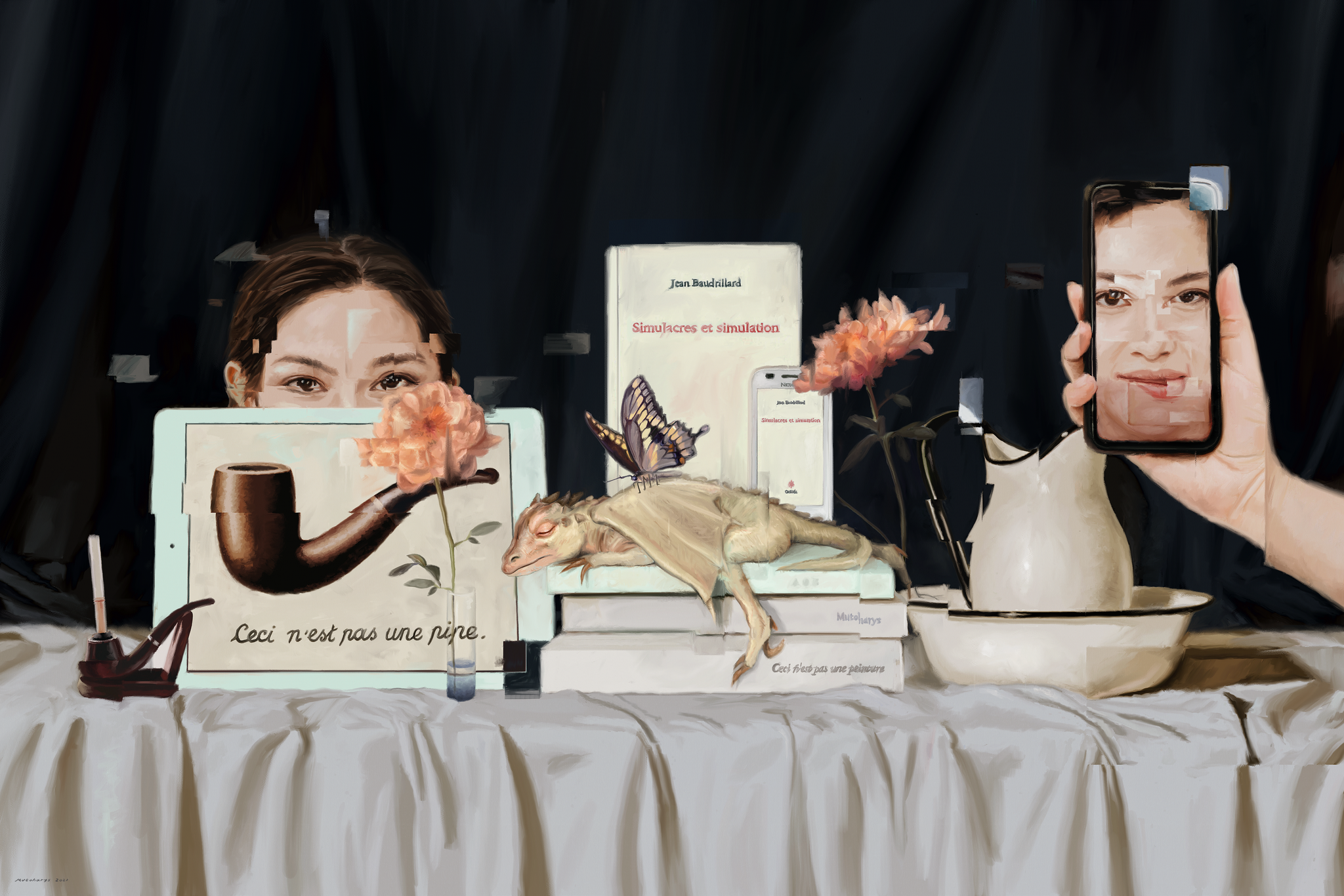 Эта чрезмерная стимуляция нервной системы в картинах Mutohari останавливается: виртуальный мир, полный адреналина, в его серии «Still Life, Still» выглядит спокойным и неожиданно ностальгическим, словно наша современность уже стала далеким прошлым.