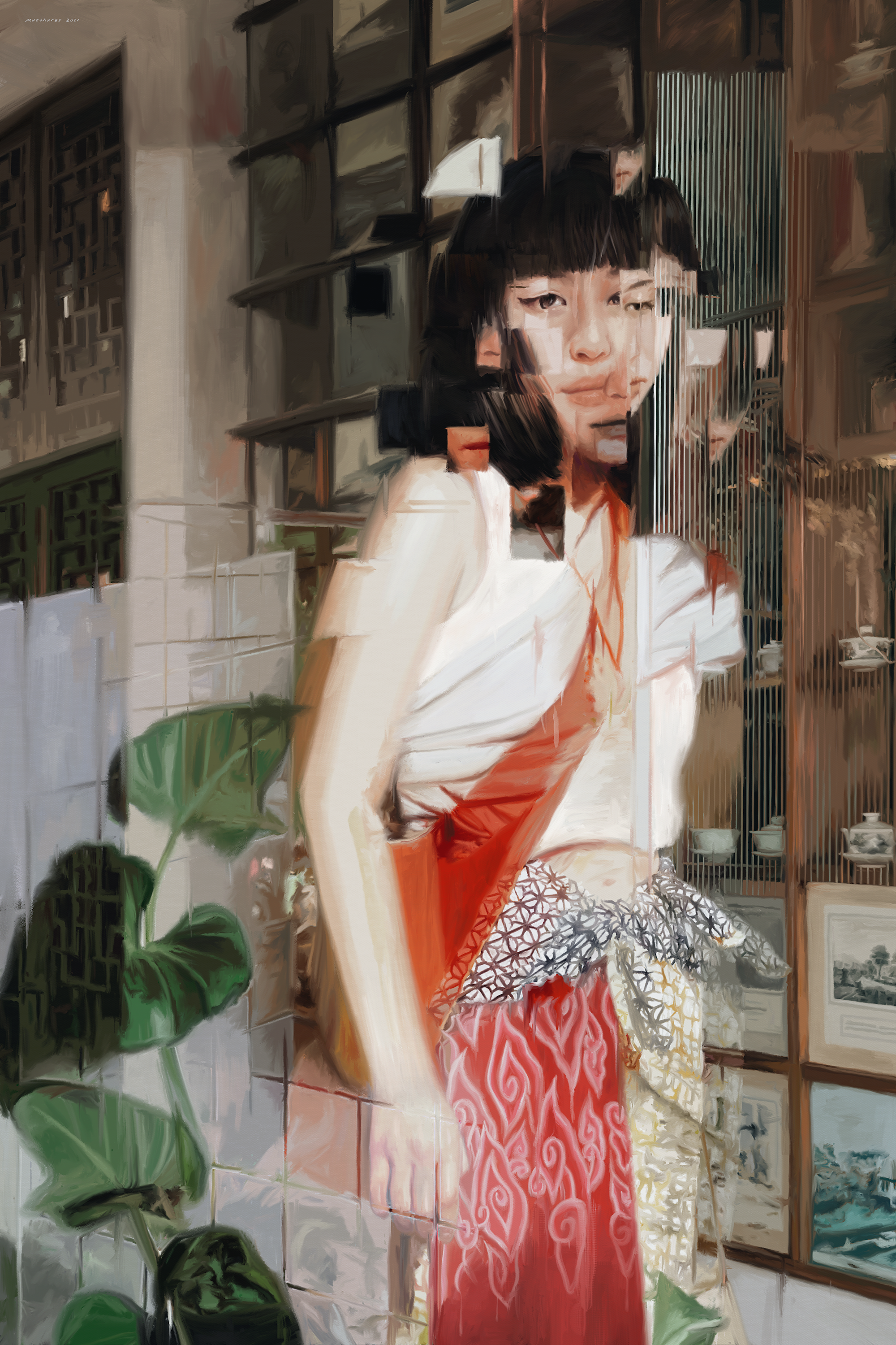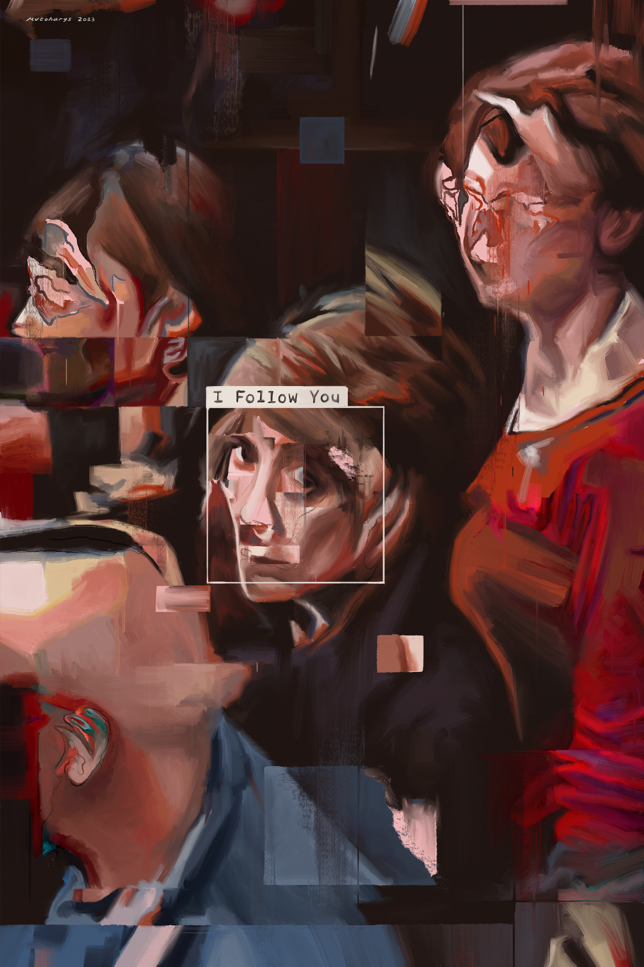 В других работах мы видим исследование цифровых технологий в контексте их взаимодействия с человеком: цифровизация жизни и glitch-пиксельный взгляд на мир стали результатом технологического прогресса и материалом для живописи Mutohari.