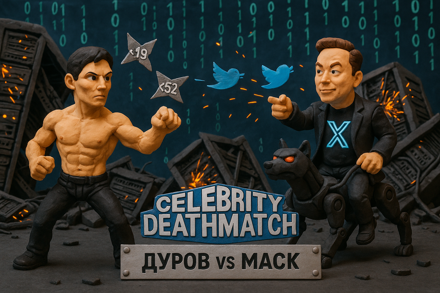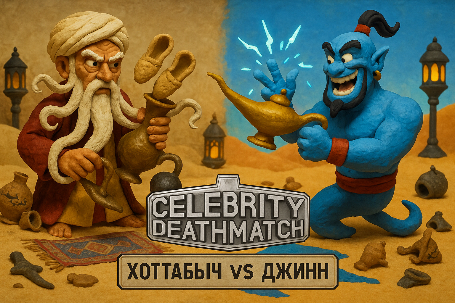 В далеком 1999-м на канале MTV я случайно наткнулся на дикое шоу, которое невозможно было забыть. Оно называлось Celebrity Deathmatch. В шоу пластилиновые версии знаменитостей убивали друг друга с особой изобретательностью. Это было невероятно, нелепо, смешно и почему-то очень честно.Я попытался представить, как выглядел бы Celebrity Deathmatch в 2025 году. И теперь я хочу такое шоу )))