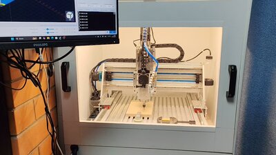 Черновая обработка однозаходной фрезой 3мм заняла почти 3 часа, скорость 1800 мм\мин. Чистовая обработка 8 часов с небольшим, скорость 1500 мм\мин.