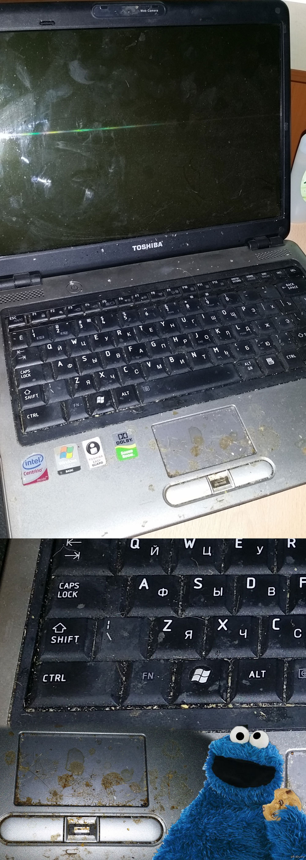 Vistler Ноутбук любителя печенек. 10 лет назад Сдал сотрудник на работе. [моё] Ноутбук Срач Работа Сотрудники Печенье
