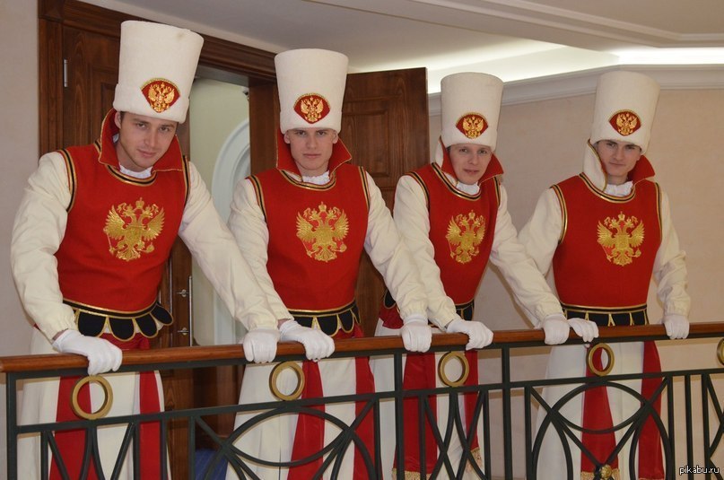 Это костюмы, которые используют организаторы праздников. Можете загуглить или найти в контакте Шоу "Дворцовые Гренадеры и Кавалергарды"
