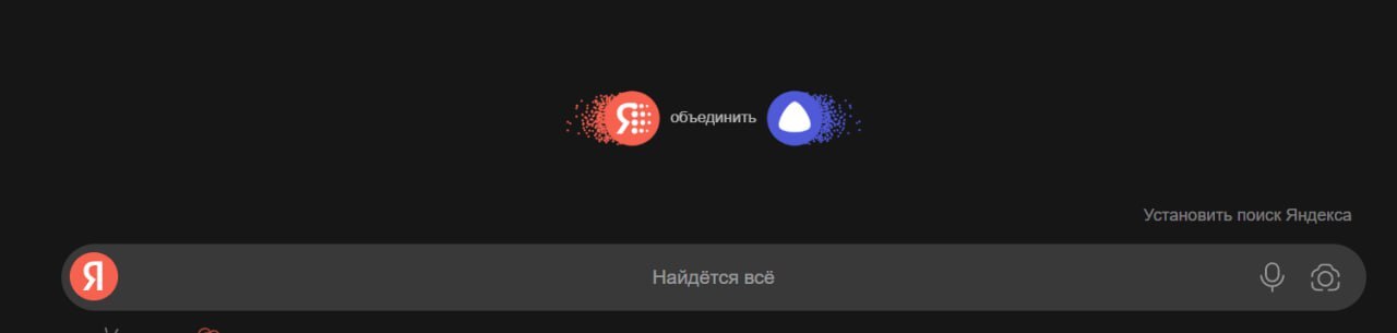 Ах да. Для тех, кто не хотел вчера дружить с Алисой, продолжала висеть назойливая анимированная плашка на пол-экрана, на странице ya.ru, идея которой — быть лаконичной строкой поиска. Это уродливо. Но вкуса у маркетолуха нет, у него лишь жжение «Ой, сколько места РЕКЛАМНОГО пропадает! КАК ЖЫ ТАГ?!».