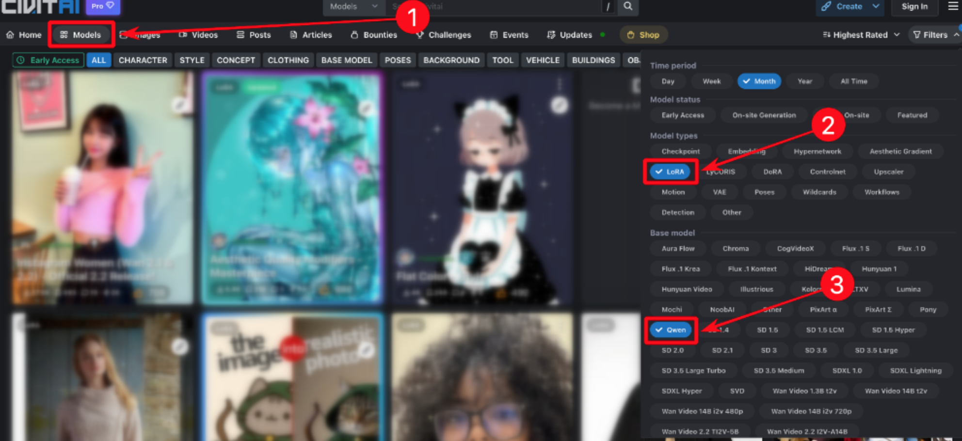 Вот что нужно сделать. Для начала определитесь, какую модель хотите использовать — например, для генерации текстов или изображений. Дальше переходите на https://civitai.com/models.