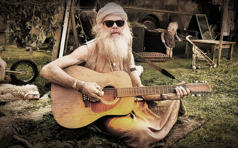 На фоне вполне реалистичных компьютерных бунгало и маленькой девочки, играющей с навозным жуком, музыкант в образе старого, замшелого хиппи из 70-х годов поёт под гитару.