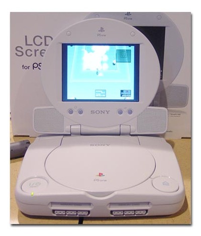 Первой консолью от Sony была серая квадратная PlayStation. Позже на рынок выпустили PSOne Slim (белая), которая кроме уменьшенных габаритов имела очень забавную фичу, к ней можно было подключить портативный экран, он крепился как раз в том месте, где на картинке расположен DualShock. Рейтинга нет вставить картинку, но думаю труда не составит прогуглить эту штуку) кстати, вот не знаю, как на слим, но на "фэт" версии в качестве аксессуара можно было купить разветвитель контролеров, он увеличивал число игроков с 2х до 4х. На счёт дисков, кто-то говорил о синих дисках. Дело в том, что по моей памяти существовало куча различных опылений на диски, в России можно было увидеть в основном белые (как сейчас выглядит любой диск) и иногда желтые. А вот японские были куда интересней, так как я родом с Сахалина, у нас постоянно находились диски японского рынка, так эти диски практически всегда шли с черным напылением, иногда синим, смотрелось шикарно)