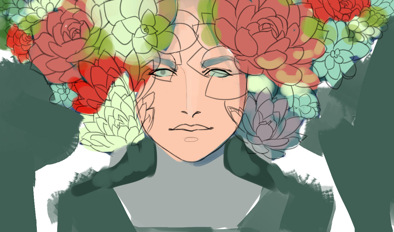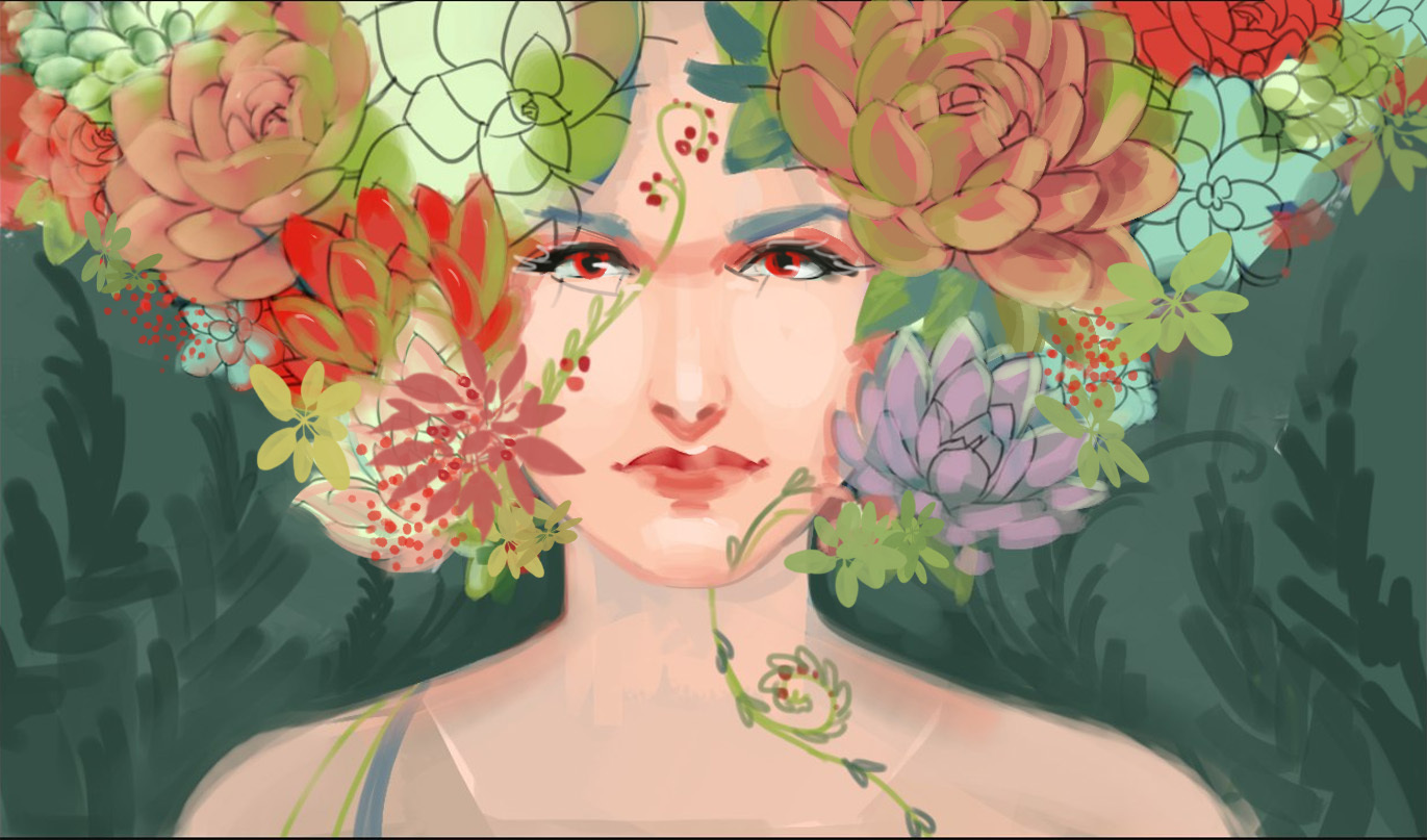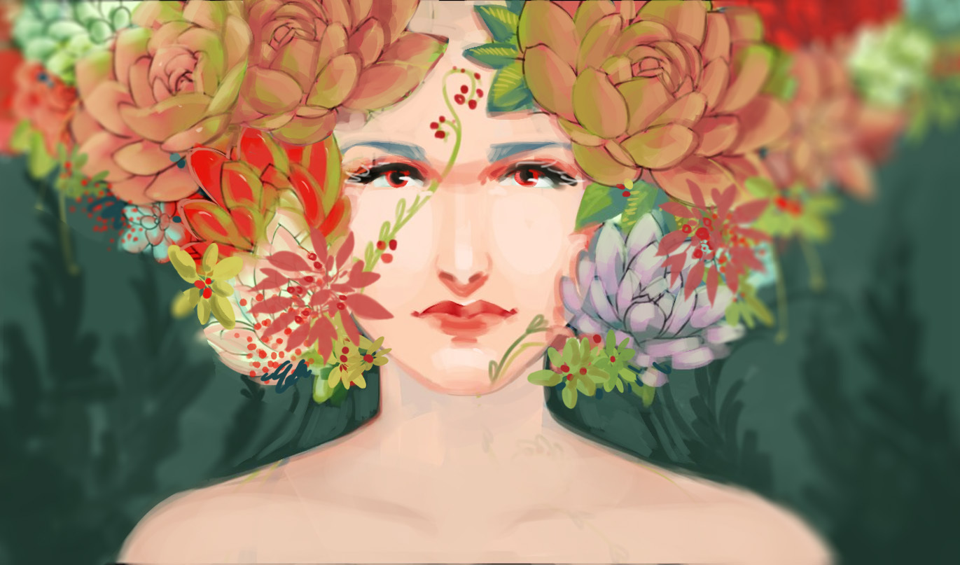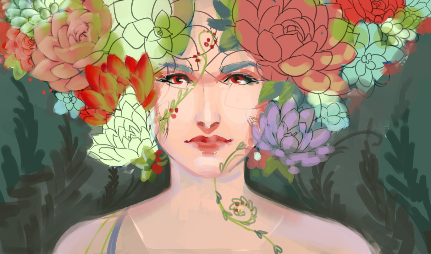 8 hollyhelgarden Новая работа+ этапы 8 лет назад Пока рисовала наскринила немного этапов Примерно линиями набросала суккуленты и всякое, раскинула цвета Начала прорабатывать лицо, добавила плечи Продолжаю детализировать Детали/цветкор. Итог. [моё] Арт Художник Длиннопост