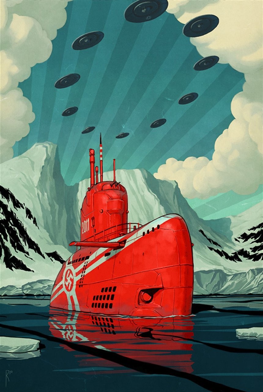 Ну и сказочку на ночь. 30 апреля 1945 года капитан люфтваффе Петер Баумгарт стартовал на своем самолете из Германии в Норвегию, имея на борту Гитлера. В одном из фьордов этой северной страны фюрер в сопровождении нескольких лиц якобы погрузился в одну из подводных лодок, отряд которых взял курс на Антарктиду. Некоторые жители острова Пасхи, кстати, вспоминали о странных ночных визитах покрытых ржавчиной субмарин осенью 1945 года.