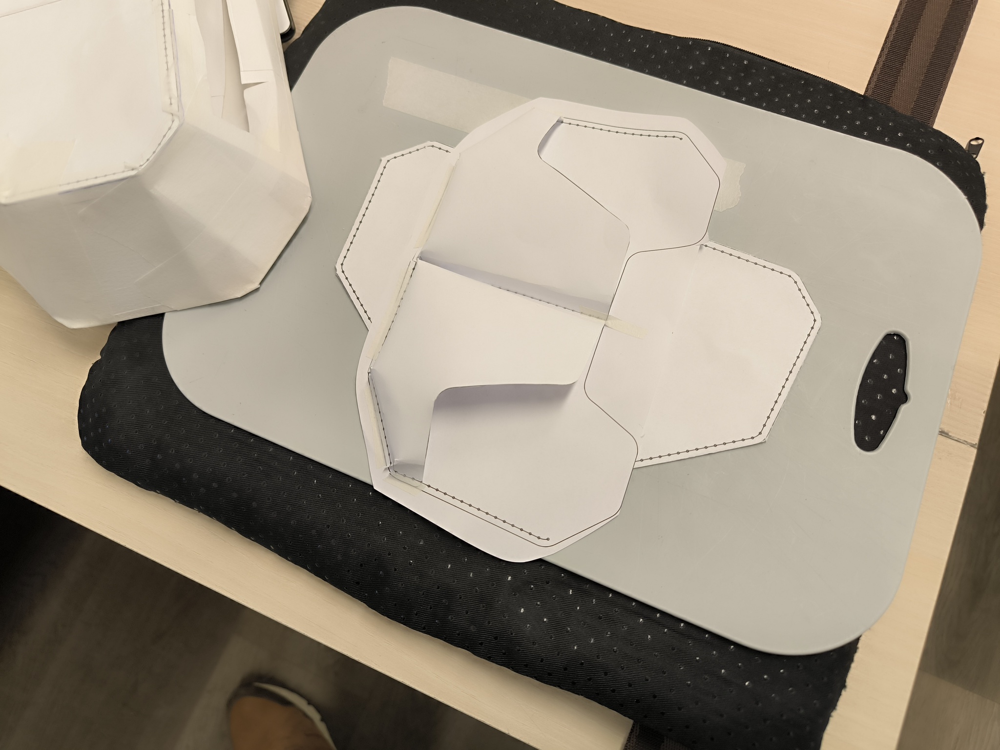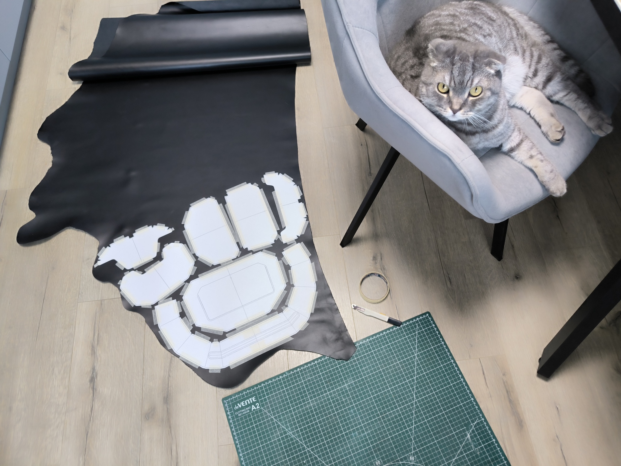 Учел ошибки прошлой, прикрутил кармашки под всë и как запилил в автокаде выкройку.