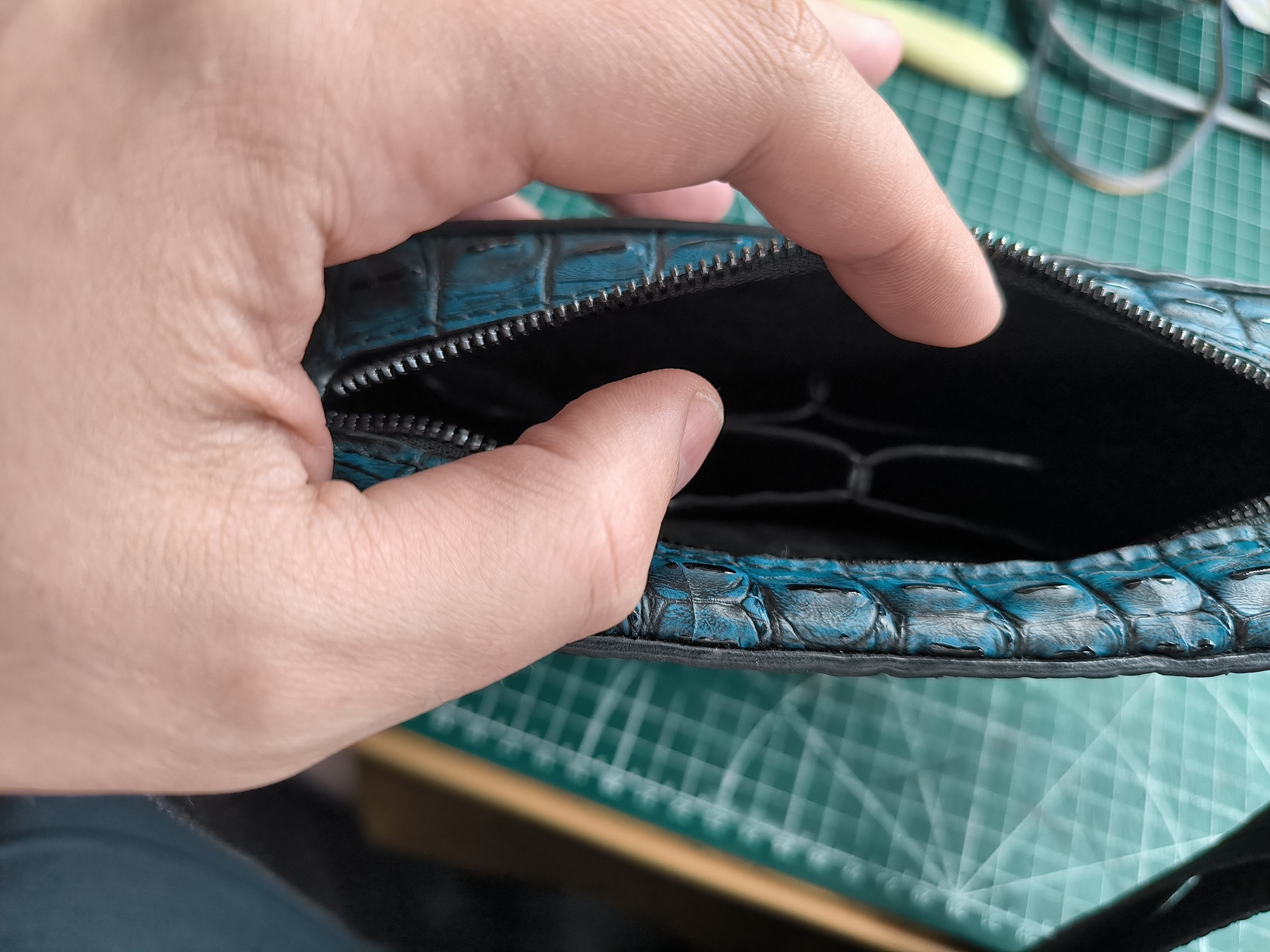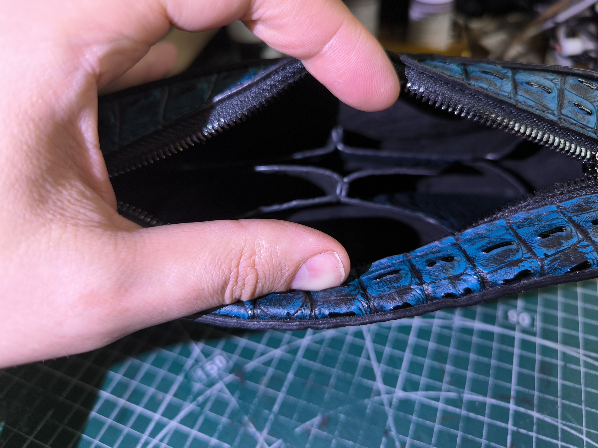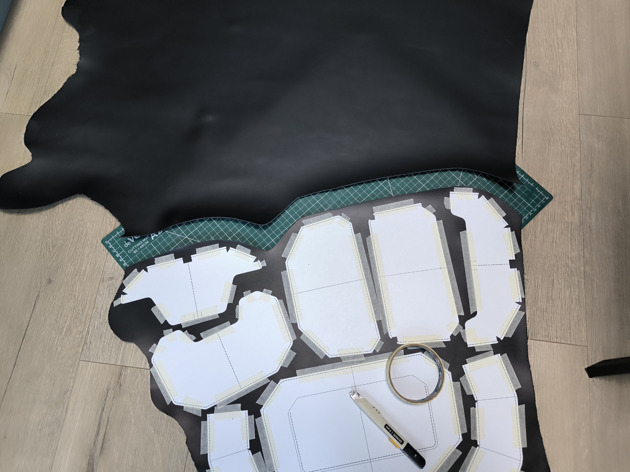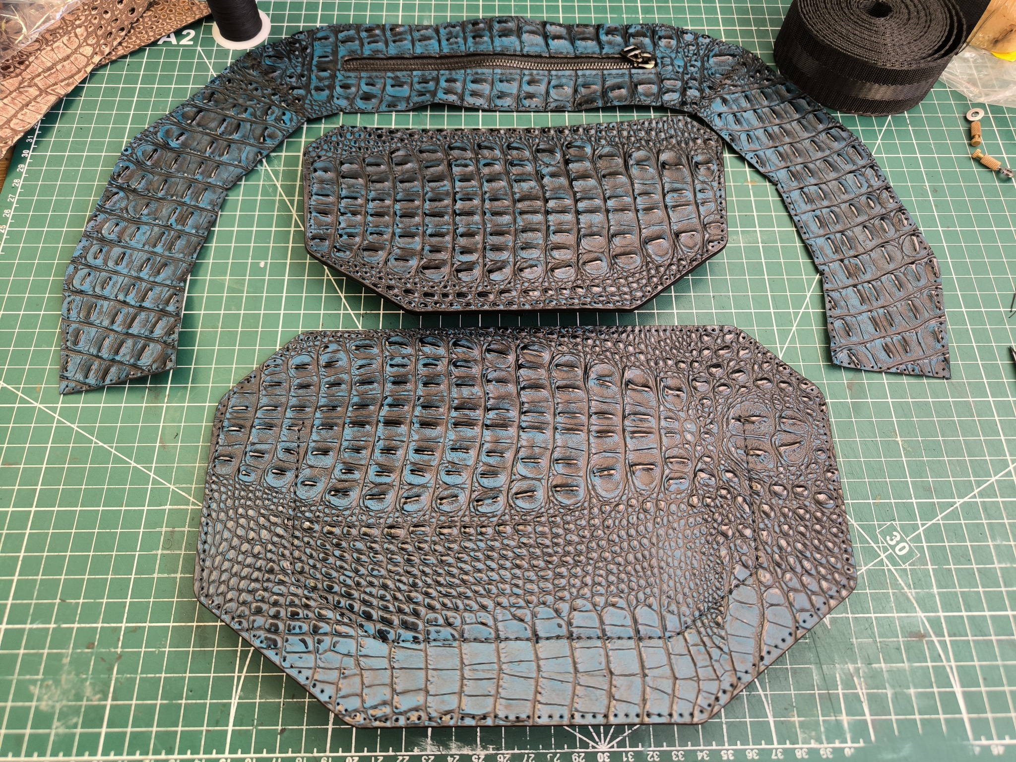 Собирая тестовый вариант, в процессе отказался от заднего кармана под мобилку, слишком громоздко выходит. Надумал все переделывать, да и сразу из нужной кожи.