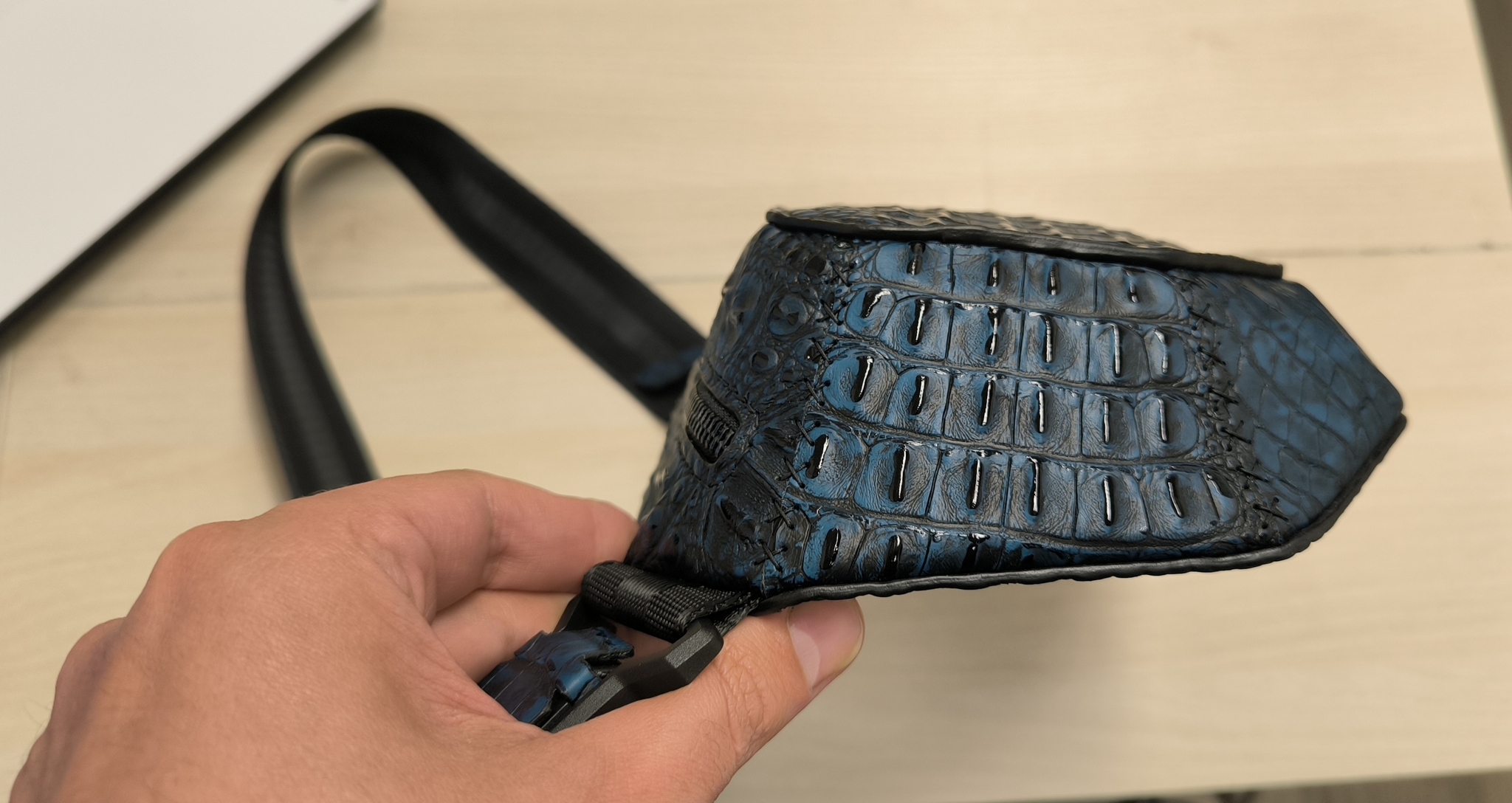 Из прелестей - оклеил крышку магнитного карабина истонченной кожей, чтоб в цвет все было (сам по себе карабин с хромированной деталью).
