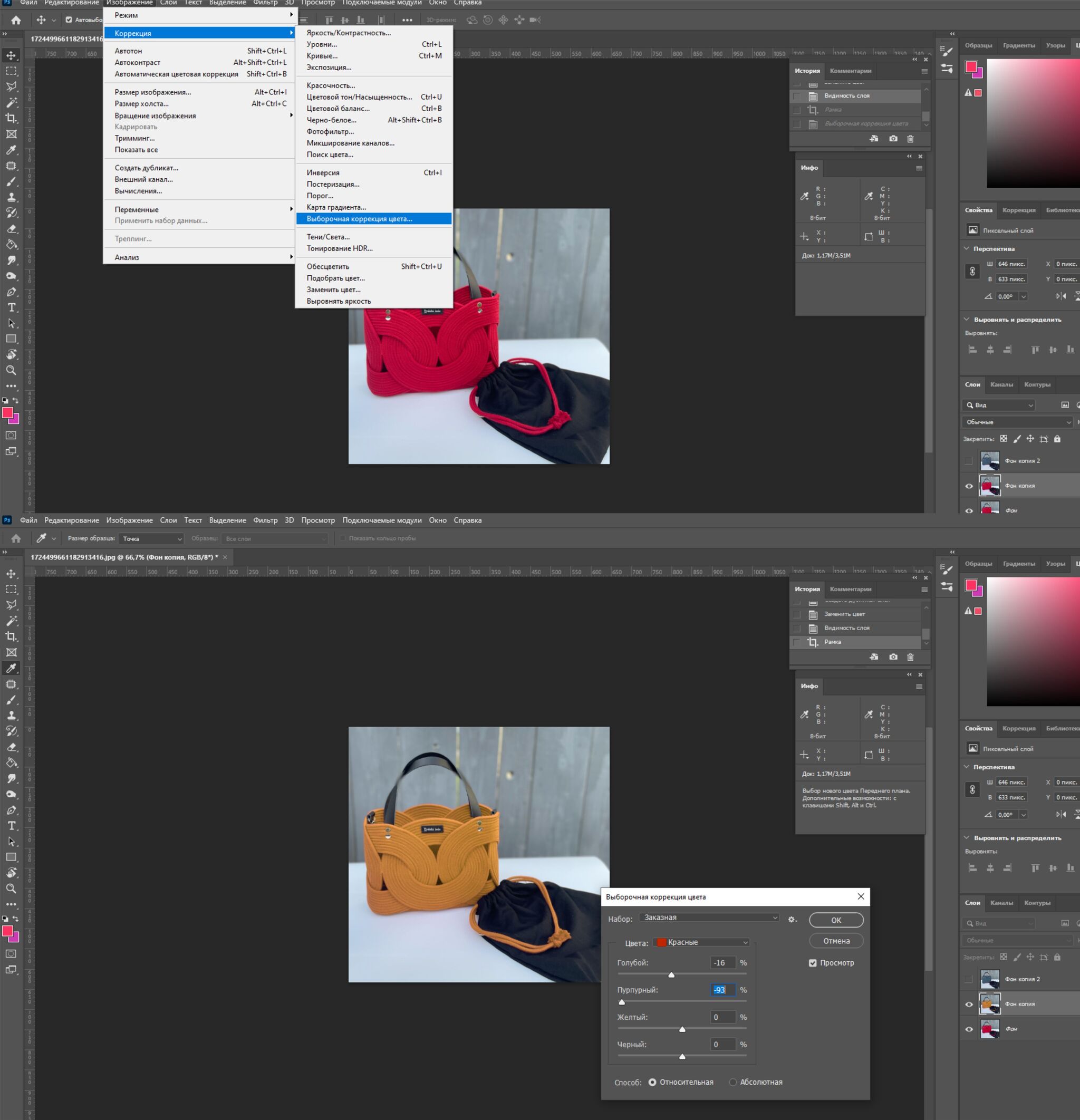 2. Изображение - коррекция - выборочная коррекция цвета - в окошке "цвета" корректируете на нужный оттенок.