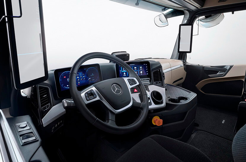 От 400-киловаттного источника тока можно пополнить заряд с 20 до 80% за 45 минут, а вот от маломощной 22-киловаттной розетки тягач придётся заряжать почти 36 часов. Запас хода 500 км Mercedes-Benz не смущает: установлено, что 60% клиентов бренда проезжают в день куда меньшее расстояние. Особенностями электрического тягача являются матричные фары, а также удлинённая на 8 см кабина с оригинальным дизайном.