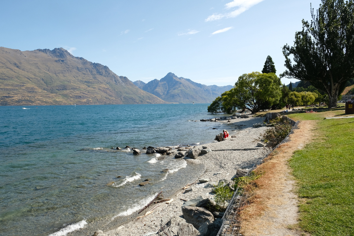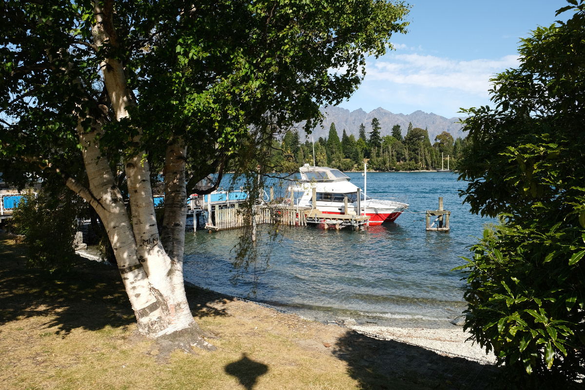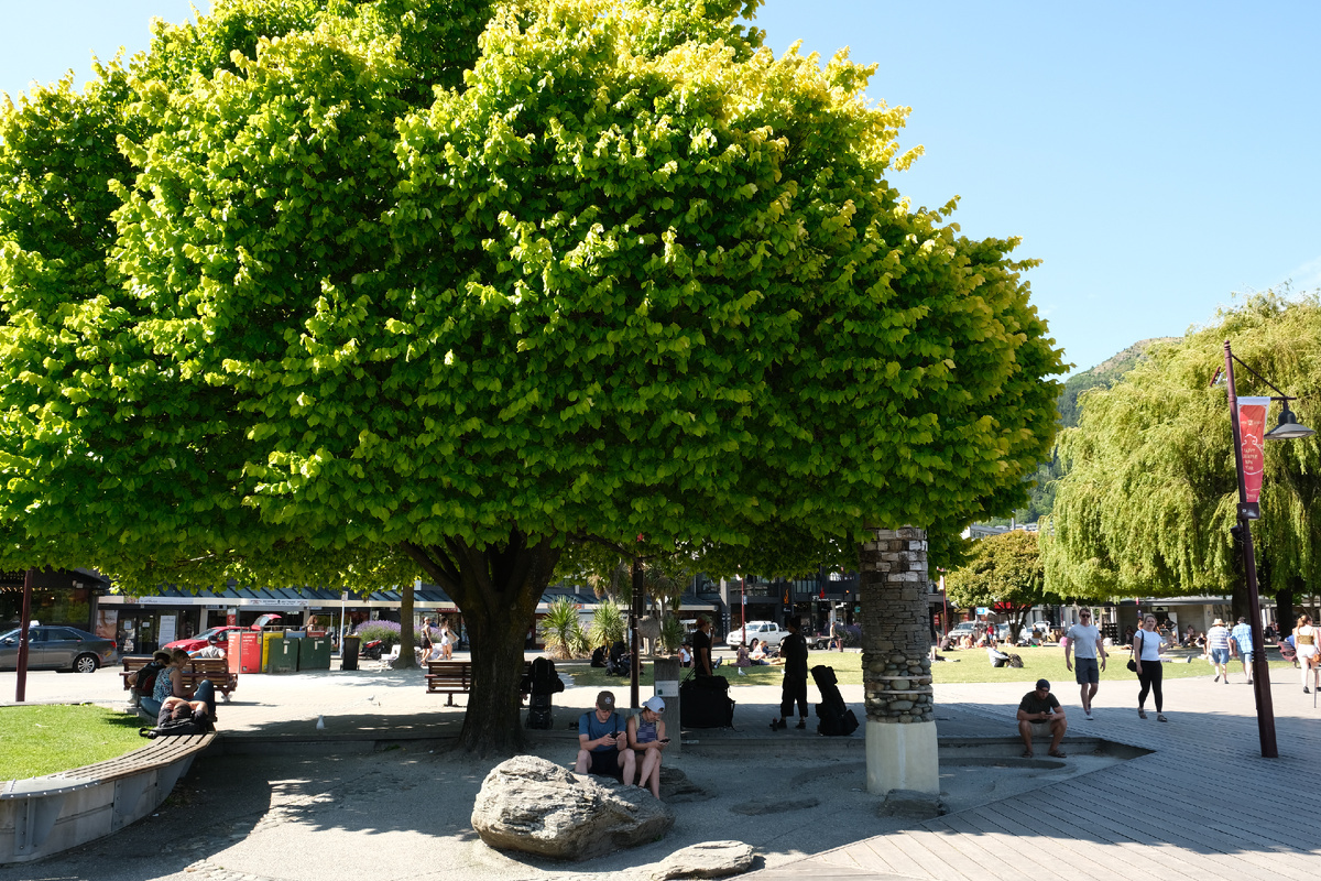 Набережная Куинстауна длинная и разнообразная. Не знаю, что за особенность климата, но деревья вырастают огромные – наши столетние дубы по сравнению со здешними великанами выглядят скромнее. А березы толстенькие и многоствольные.