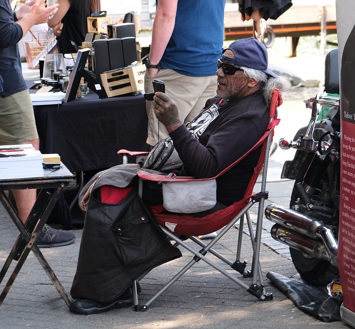 В основном, здесь гуляют туристы – город курортный. Но есть и местные, колоритные персонажи. В центральной части набережной седой маориец в темных очках, с лицом, густо покрытым татуировками, продавал свою книгу. Ну, как продавал – сидел в складном кресле, изучал экран смартфона. Книги кучками лежали рядом. На картонной табличке было написано, что он – вождь одного из племен маори, рассказывающий об истории и жизни своего народа. Неприлично было пялиться, но мы все же поразглядывали узоры на его лице: кольца, прямые линии, точки. Традиционные татуировки маорийцев – Моко – не для красоты. Они обозначают социальный статус их обладателя, его род и племя. Вождь был очень колоритен. Дополнение к образу – внушительный размеров Харлей, припаркованный за его спиной.