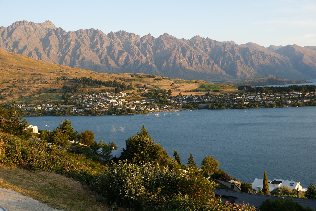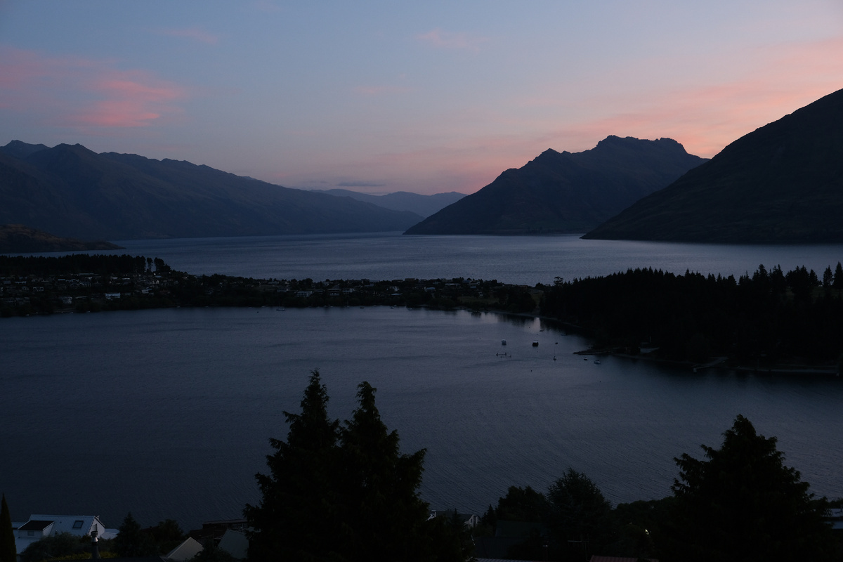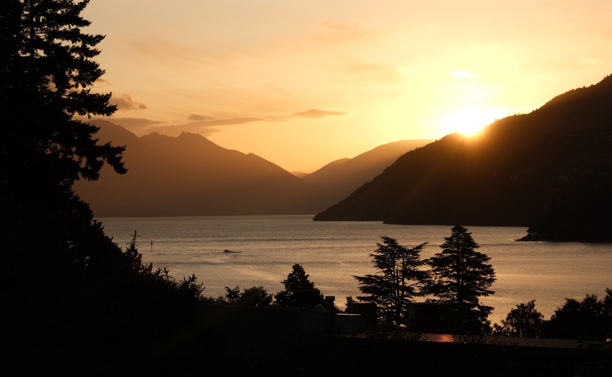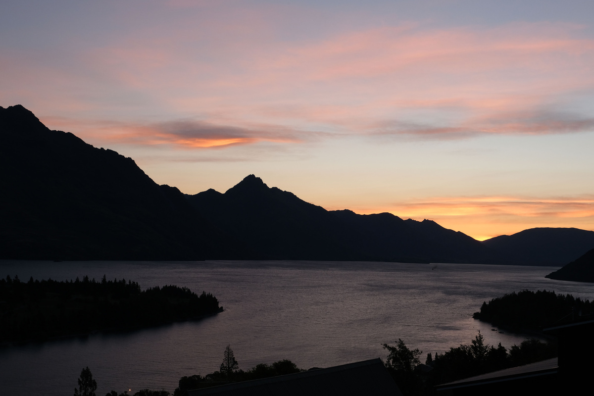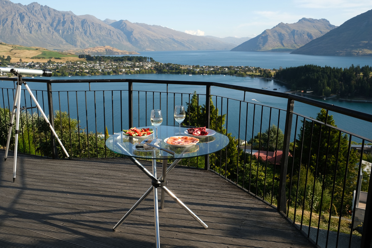 В этот раз мы жили на вилле. Рядом с центром города, на высоком холме с фантастически красивым панорамным видом на Куинстаун и Уакатипу. Вечером накупили вкусностей и расположились на широкой веранде провожать солнце.
