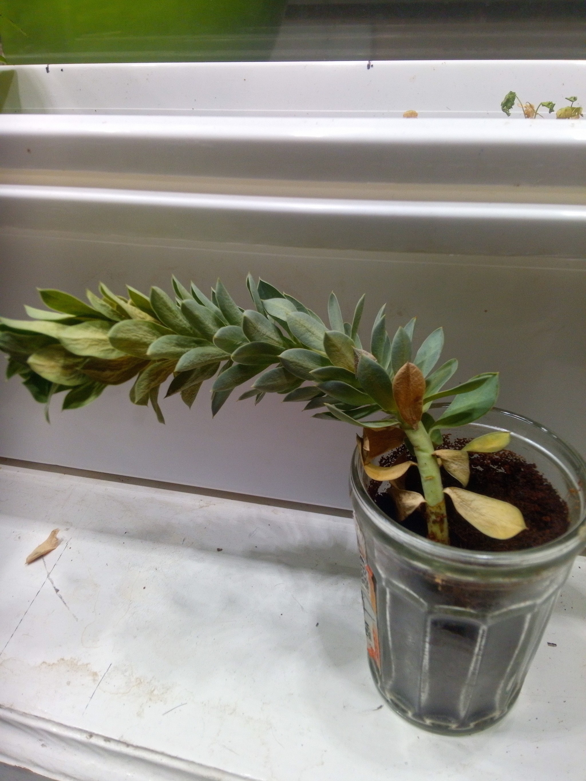 На последнем фото состояние результат сильного переохлаждения, забыл бедного на балконе при ~-10 почти на неделю, при этом в грунт он посажен был за пару недель до этого, на укоренение, в виде грунта у меня кокосовый субстрат если что