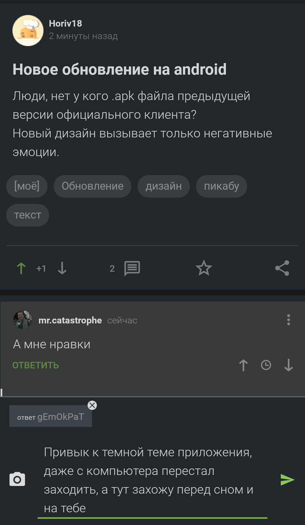 Новое обновление Пикабу на android
