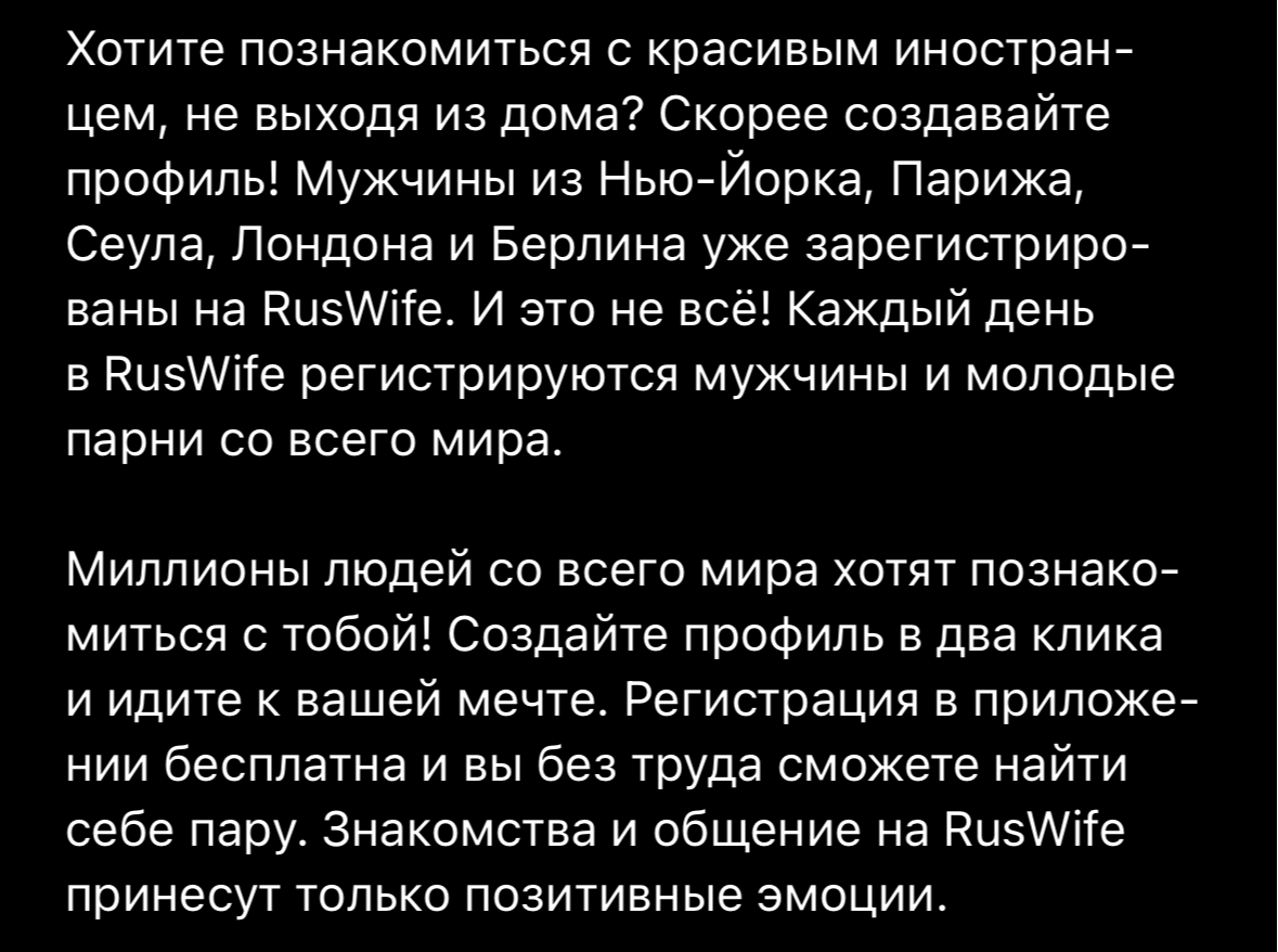 Новое (очередное) отвратительное приложение знакомств для Наташек "RusWiFe"