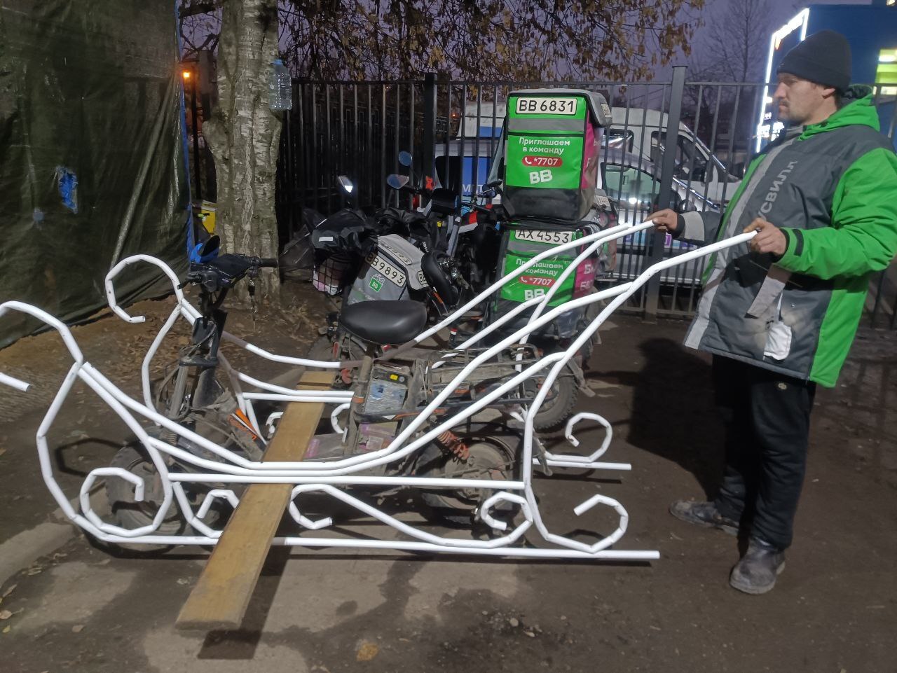 Всем привет. Меня зовут Валерий. И я работаю в компании Вкус Вилл. Не так давно, мой сын спросил, прийдет ли к нему Дед Мороз. По совещавшись с супругой, решили, что все таки прийдет. Но как всегда есть НО. " А почему именно только к нашему сыну может прийти Дед Мороз. Ведь заказать этого волшебника довольно дорого. И не всем по карману. А давай он придёт к как можно больше детям. Родной. Подумай. " А ведь и правда. Можно же сделать что то интересное. Но просто прийти и поздравить детей - это бонально. И тут зашевелились тараканы в нашей голове дережируя шилом в попах. А может не только для клиентов моей родной компании, а и для всех детей и взрослых детей устроить праздник. И придумали мы доставку Дедом Морозом на санях. Но что бы успеть к многим клиентам, а ещё и по дороге раздать маленькие подарочки, нужно какое то быстрое средство передвижения. Лошадь мы конечно не найдём. А вот переделать электровелосипед - легко. Поговорив с куратором и вышестоящим руководством мы принялись за дело. Жена отвечает за идеи. А я отвечаю за реализацию. Фото буду выкладывать ниже, а так же в следующих постах. Если вам понравится.