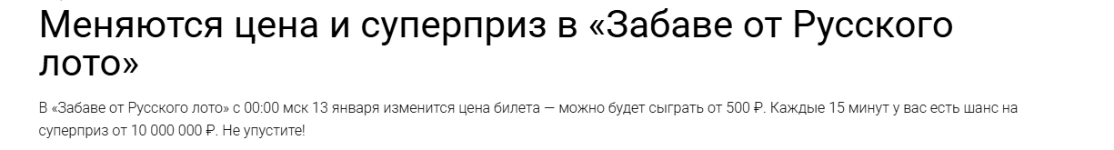 Удивительно другое: в этой лотерее скопился суперприз размером около 91 миллиона рублей при стоимости билета в 200 рублей. Джекпот долгое время оставался невостребованным.