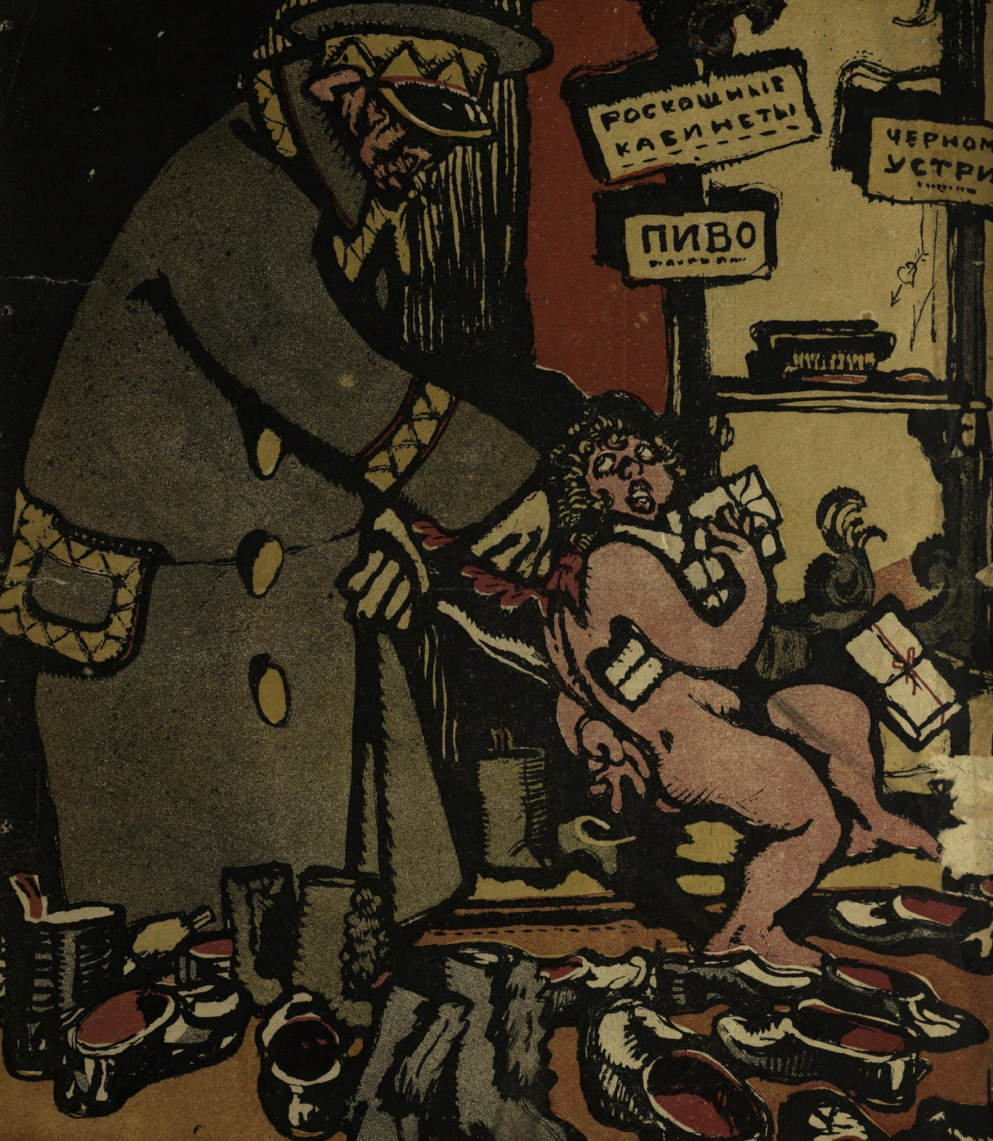 Городовой: - По-моему, это, ваше благородие, - немецкий шпион! Борода привязная, а в мешке нашли модели пушек и разную военную контрабанду.