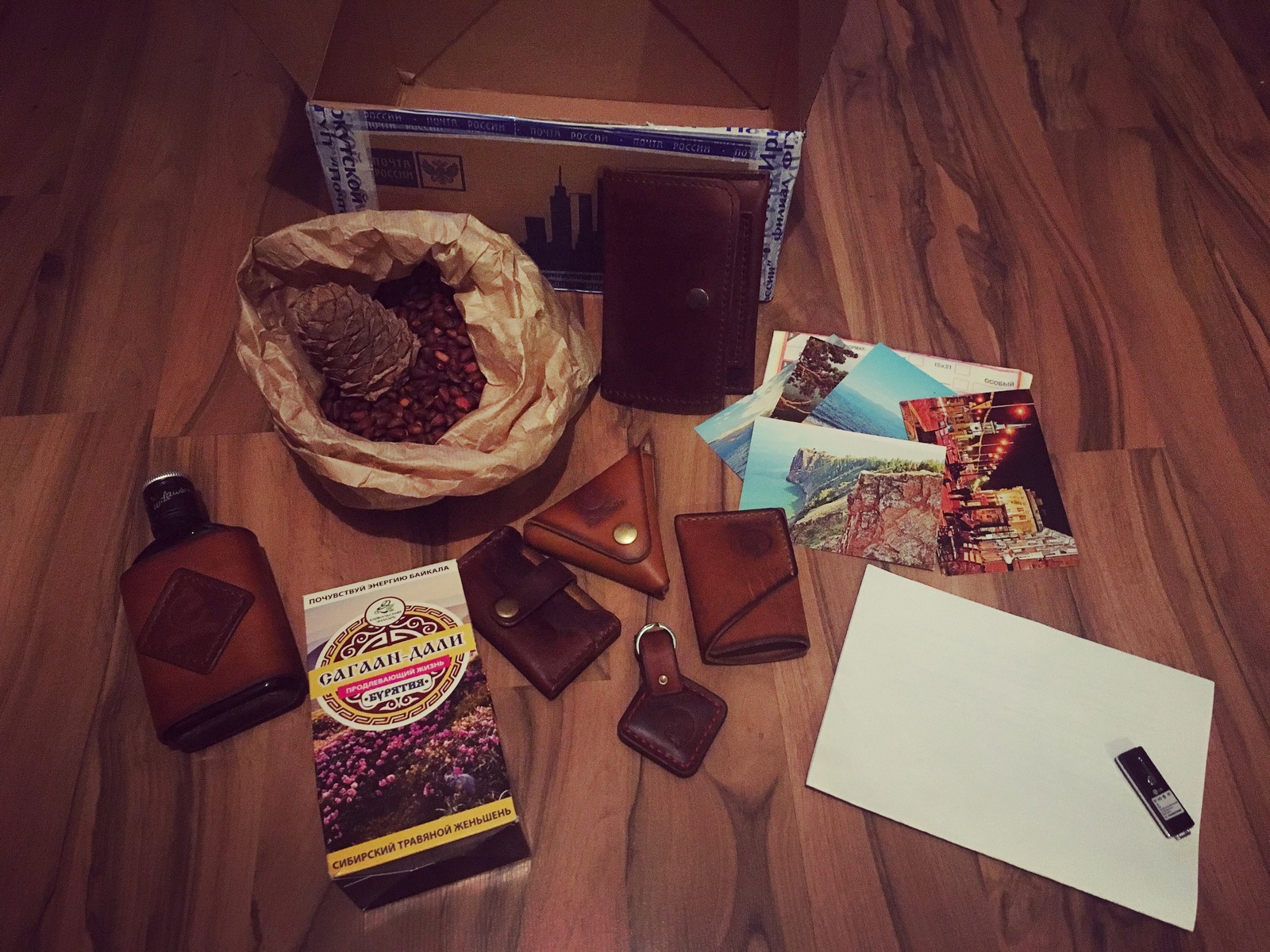 Пост неописуемой радости! Впервые в этом году поучаствовала в акции Анонимный Дед Мороз. Если честно, когда я отправляла подарок в Питер, думала ну ладно, мне ничего не отправили, но хоть человека порадую. И тууууут! Вечером прихожу домой и получаю уведомление : "Вам направлена посылка". Из Ангарска! 2 кг! Это же Байкал, это же так далеко! Каждый день следила за трек-номером, уже смотрела график работы почты понимая, что наверное в этом году уже не успею забрать. Но к счастью 30-го числа Почта России сжалилась и ко мне пришел этот чудесный набор. То, что было внутри я никак не ожидала увидеть. Мой тайный санта занимается поделками из кожи и тут просто куча полезных вещей ручной работы от ключницы до кошелька. На флешке записаны несколько треков Ангарских музыкантов, в бутылочке домашняя настойка, ну конечно же мешооок! кедровых орехов, которые я сейчас довольная сижу и ем горстями сырыми, сидя на полу. Спасибо @HollyCoast за такое новогоднее чудо! Ураааааа!!!!