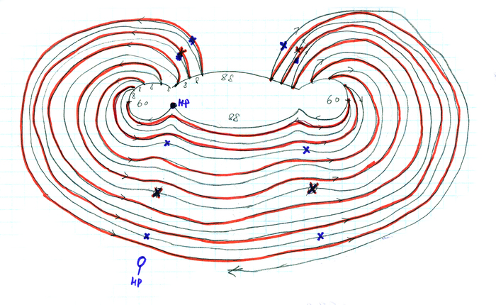 Схема ростка...Тут чёрт ногу сломит. Принцип действия, если вязать пуловер сверху. Вообщем, поворотные ряды начинают вывязывать с середин рукавов, возвращаясь провязывать дальше 8 петель и опять поворачивать. Сокращения я делала в каждом 4 ряду.